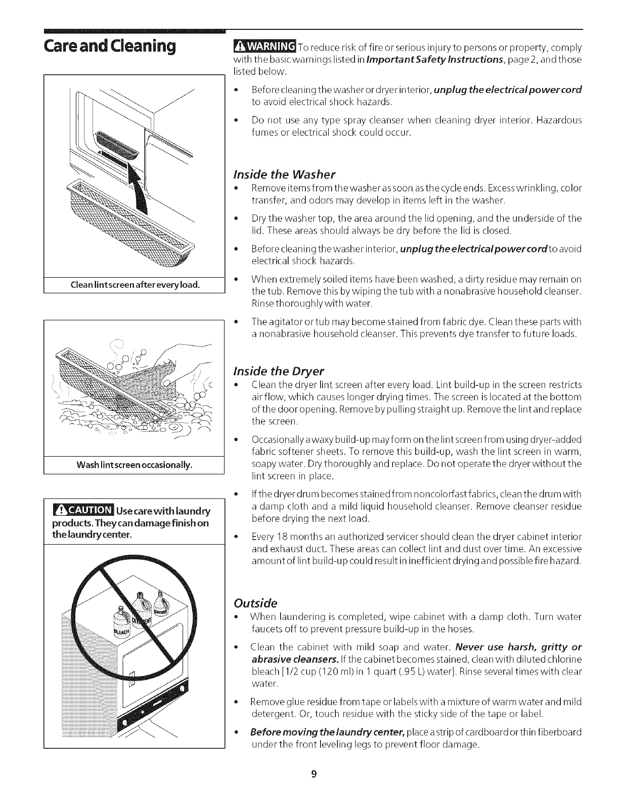 Care and Cleaning ..................................................... 9-10