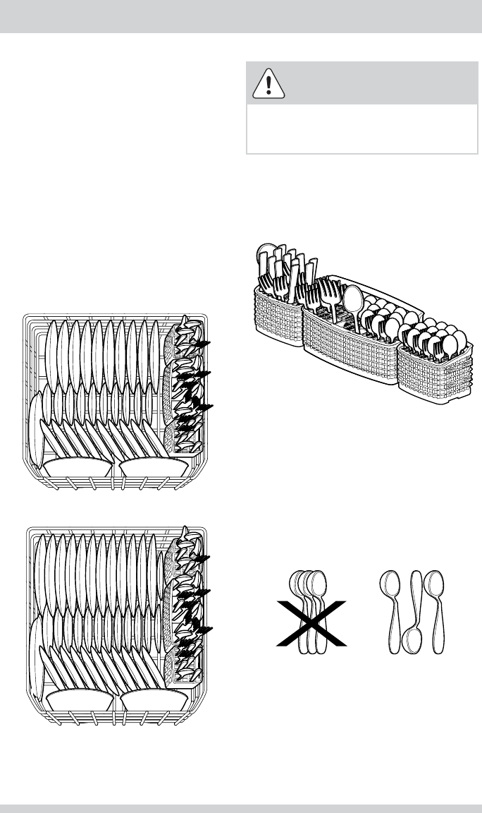 •    Load sharp items and knives with the