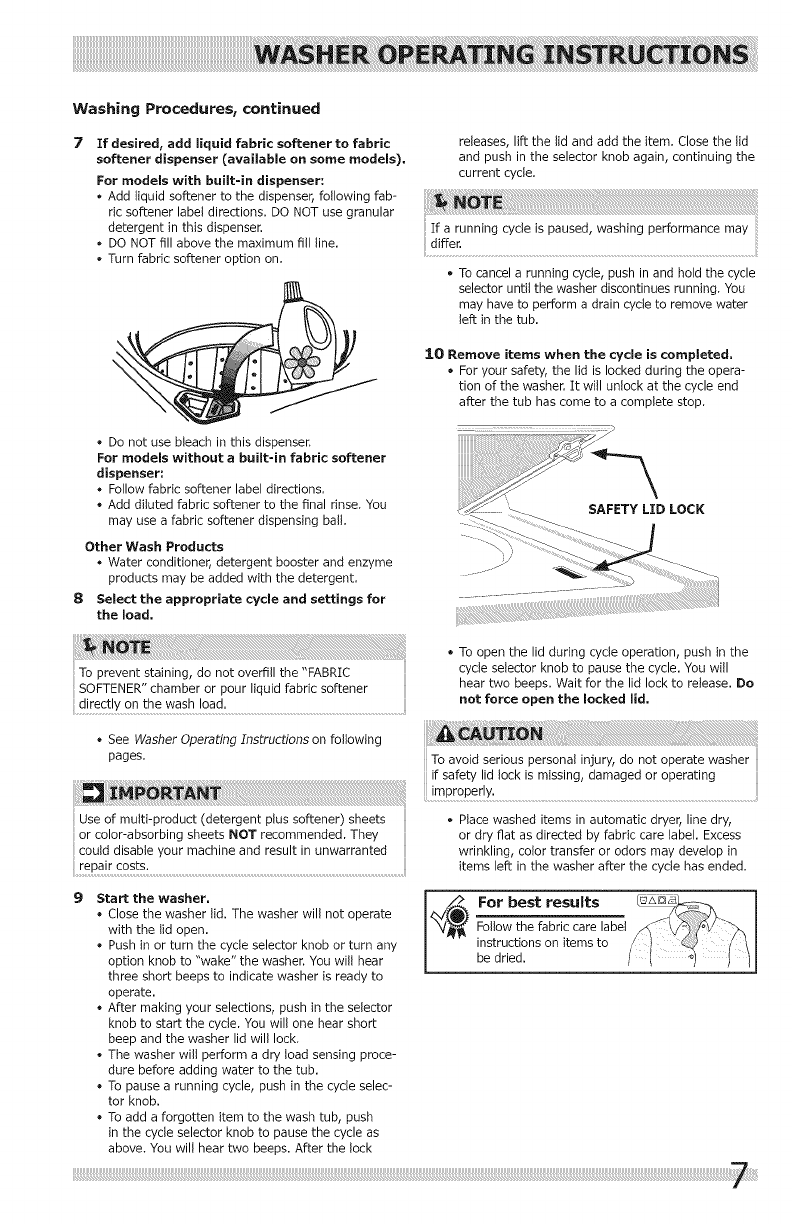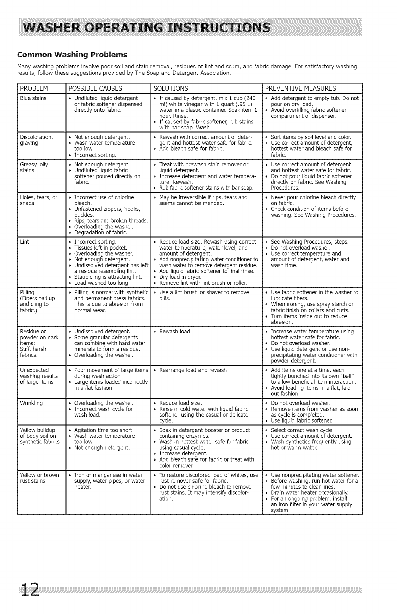 Washer Operating Instructions ....................... 6-12 Notes ............................................................. 22