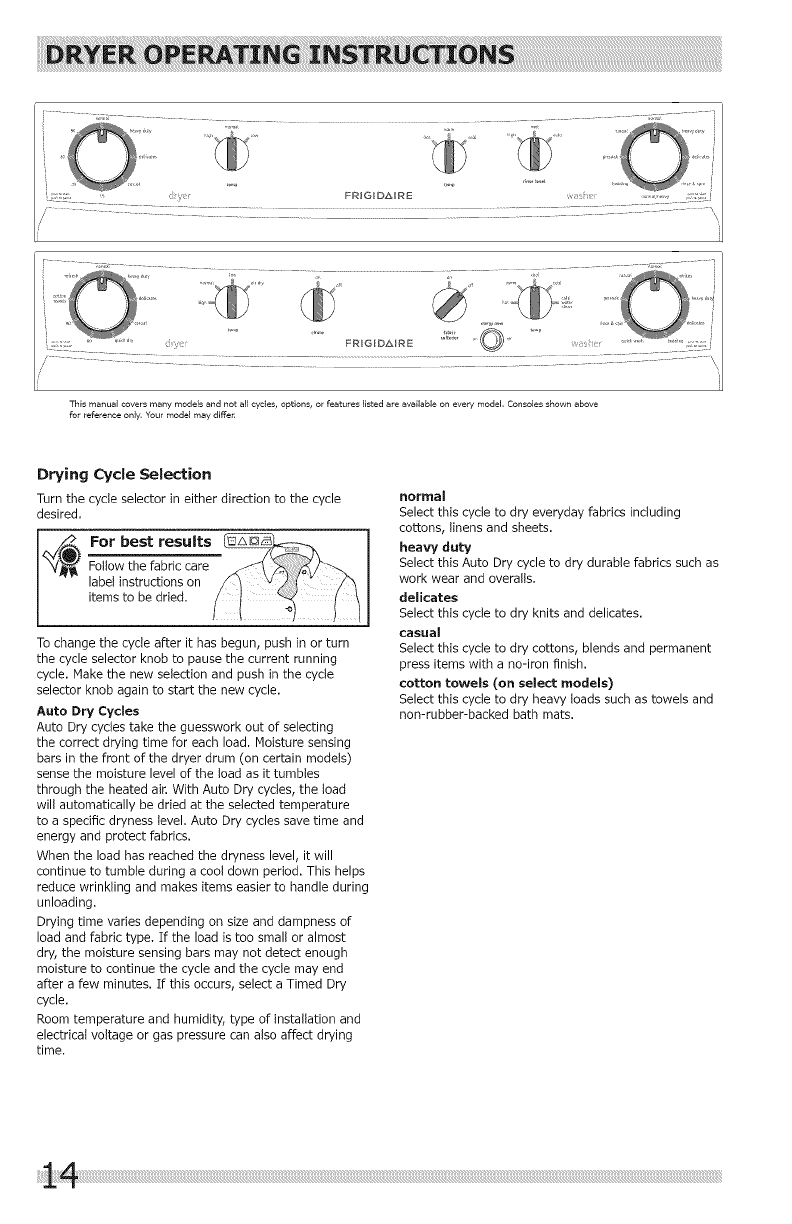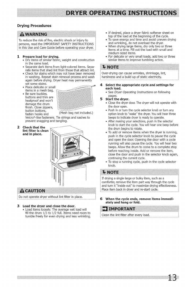 Dryer Operating Instructions ........................ 13-16 Fran_als ........................................................... 23