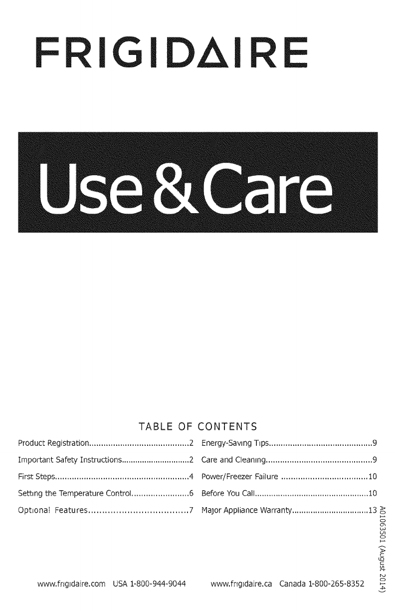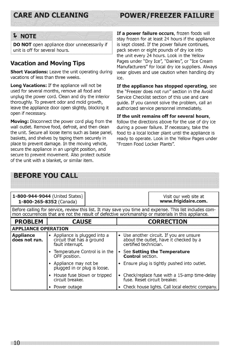 Frigidaire FFVU17F4QWA User Manual FREEZER Manuals And Guides 1410253L