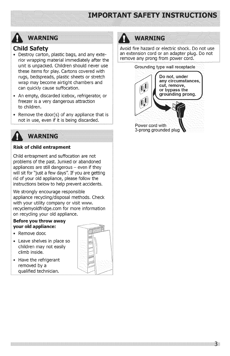 unit is unpacked. Children should never use Grounding type wall receptacle