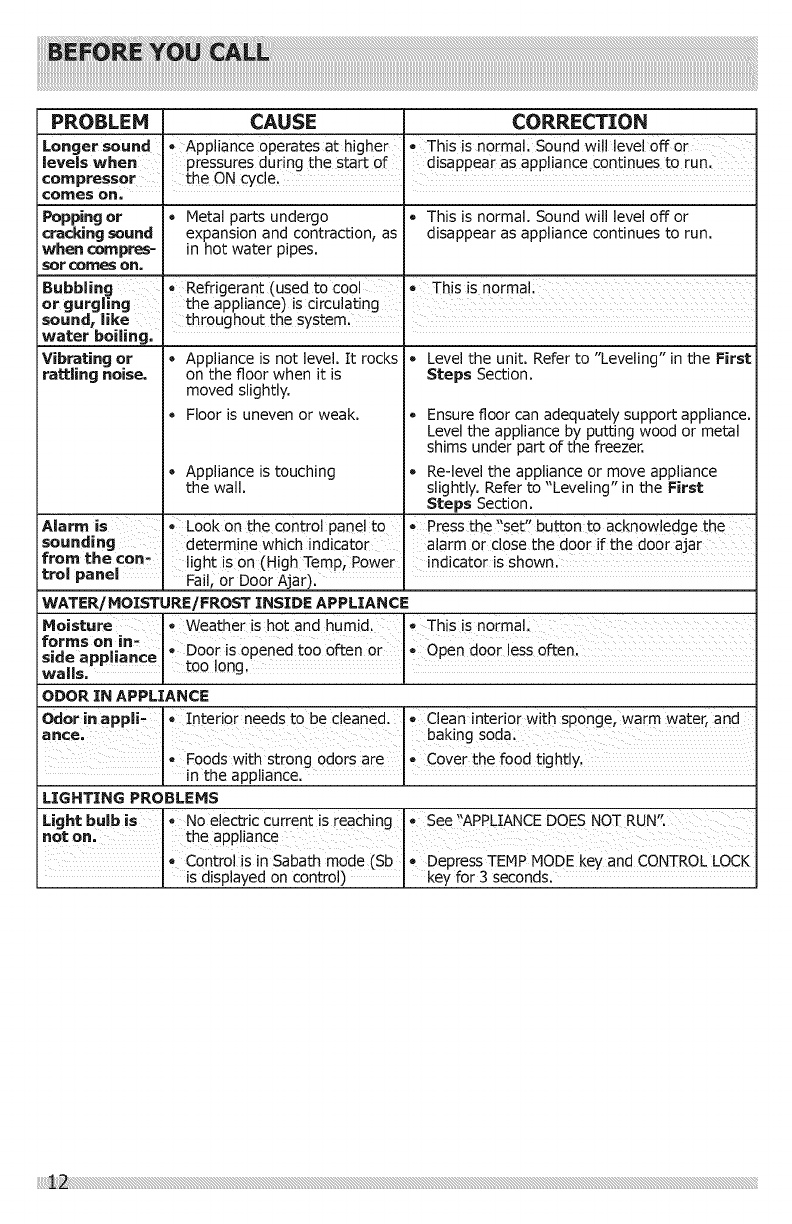 Longer sound Appliance Operates at higher *This is normali Sound will level Off or