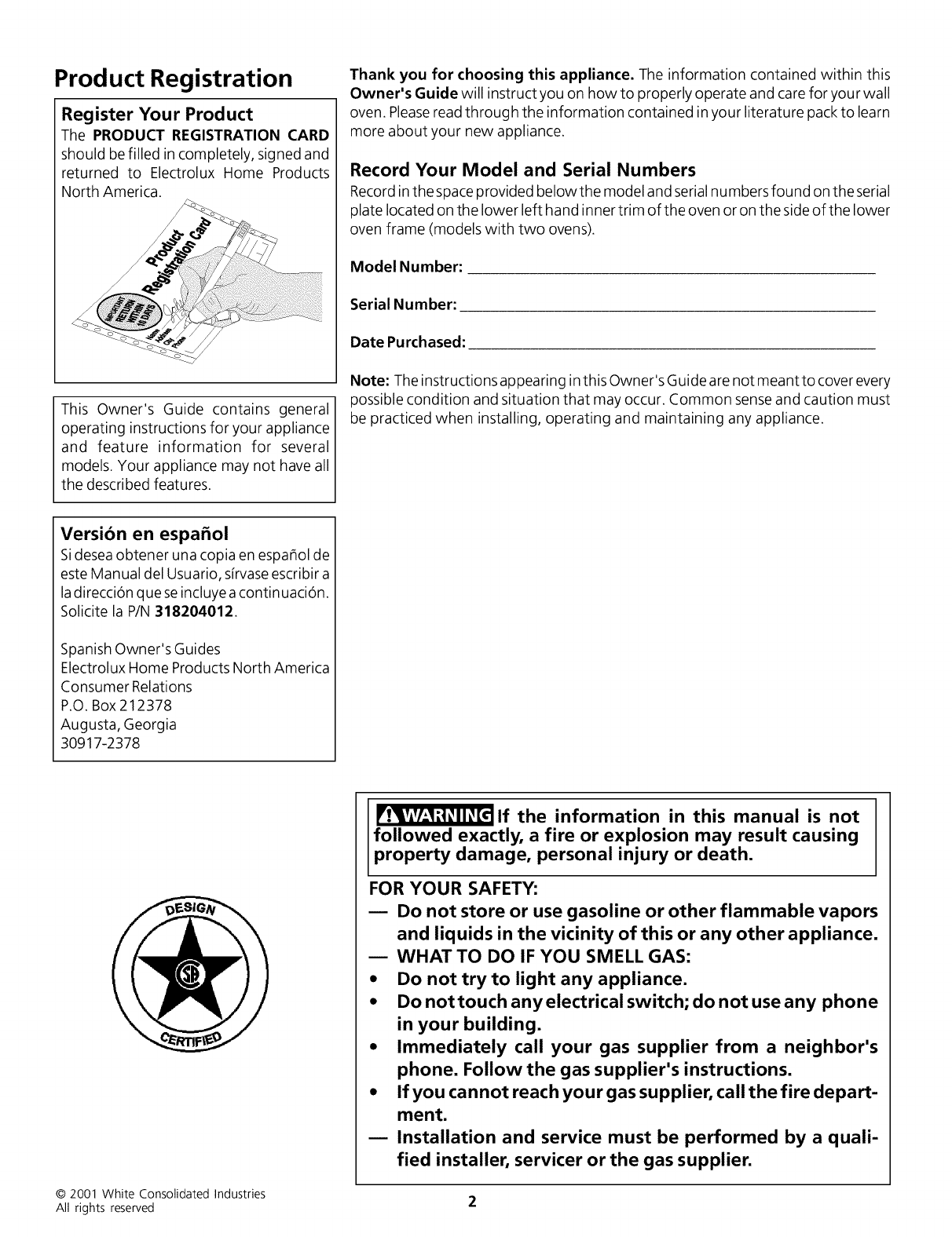 Industries, Inc. In Canada, your appliance is warranted by Electrolux