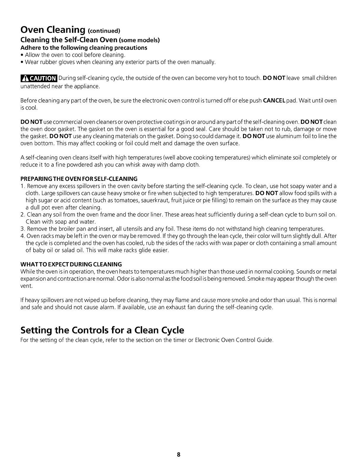 Self-Cleaning cycle does not work. Controls not set properly. Follow instructions under Oven Cleaning.