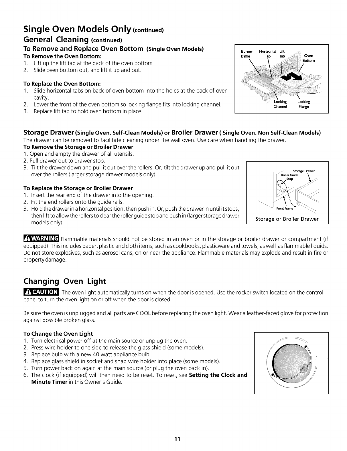 6. Replacement of light bulbs and/or fluorescent tubes (on models with these features).