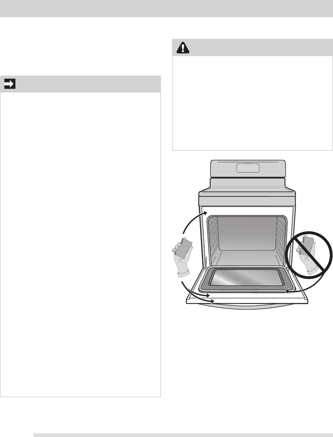 water or a nylon scrubber. Be careful not to damage the oven gasket.