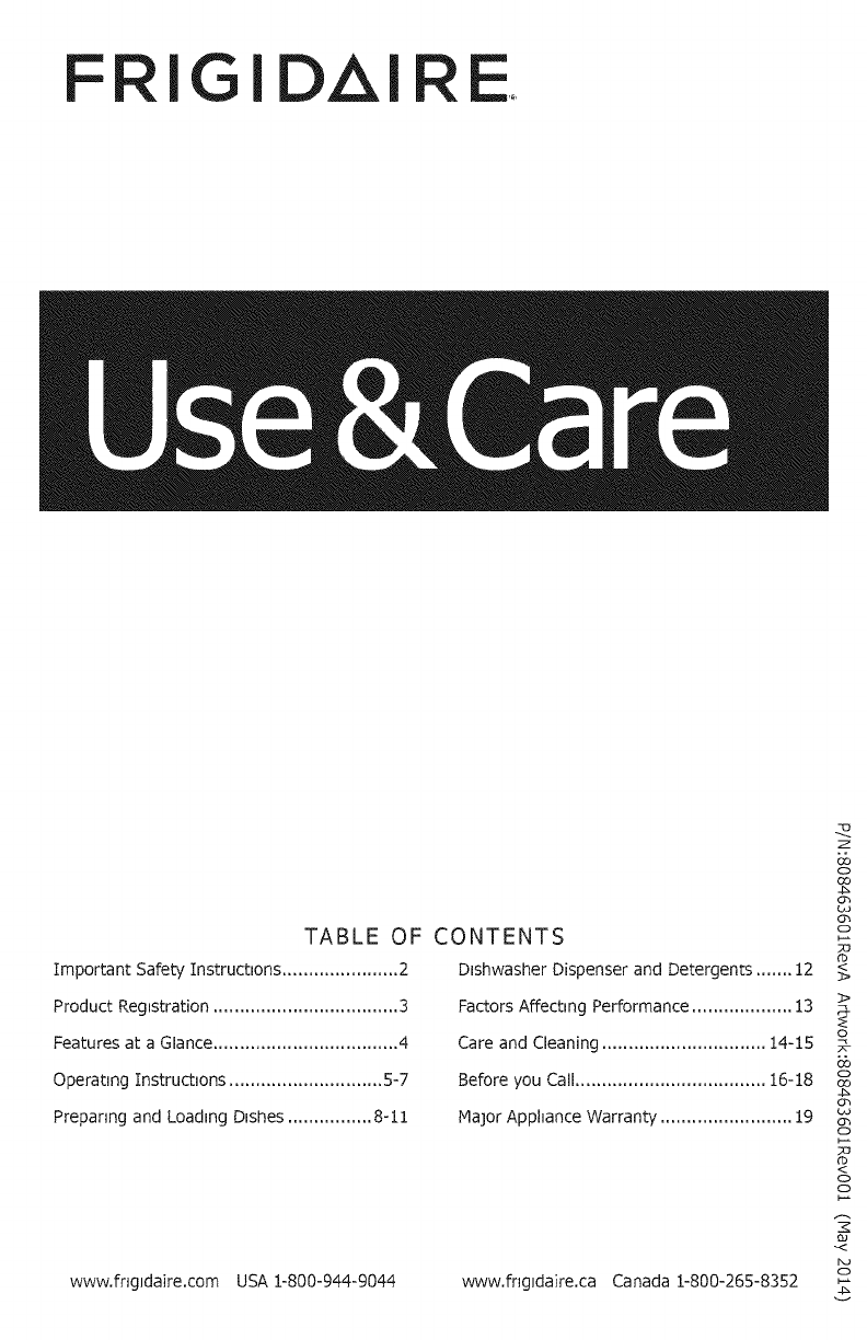 Frigidaire FGID2466QB1A User Manual DISHWASHER Manuals And Guides 1406202L