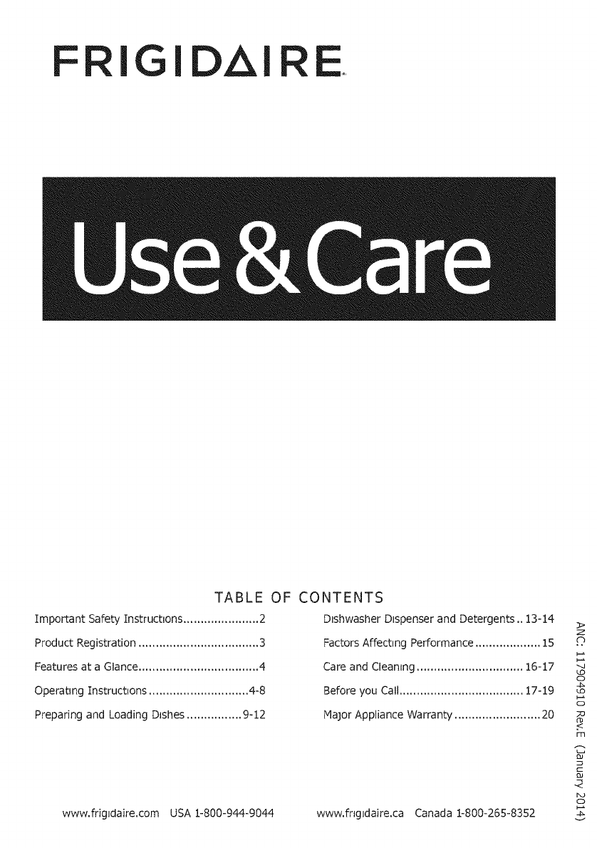 Frigidaire FGID2474QF0A User Manual DISHWASHER Manuals And Guides 1403212L