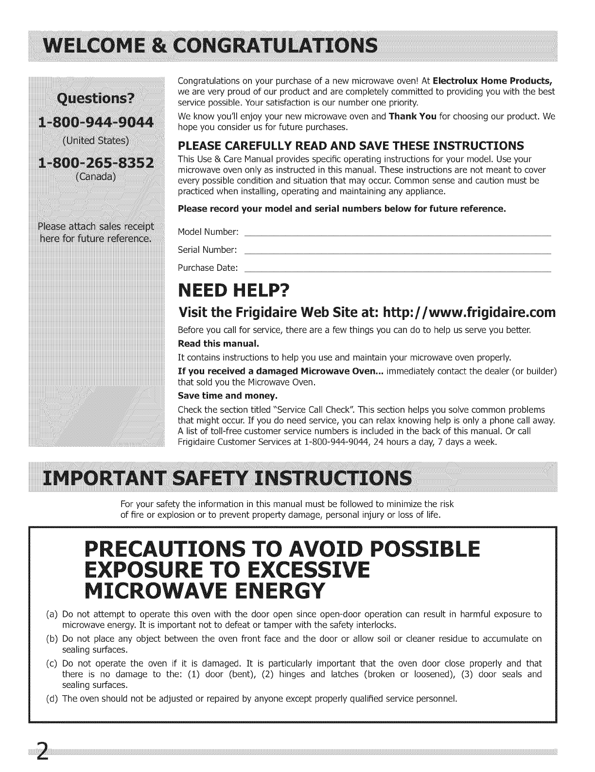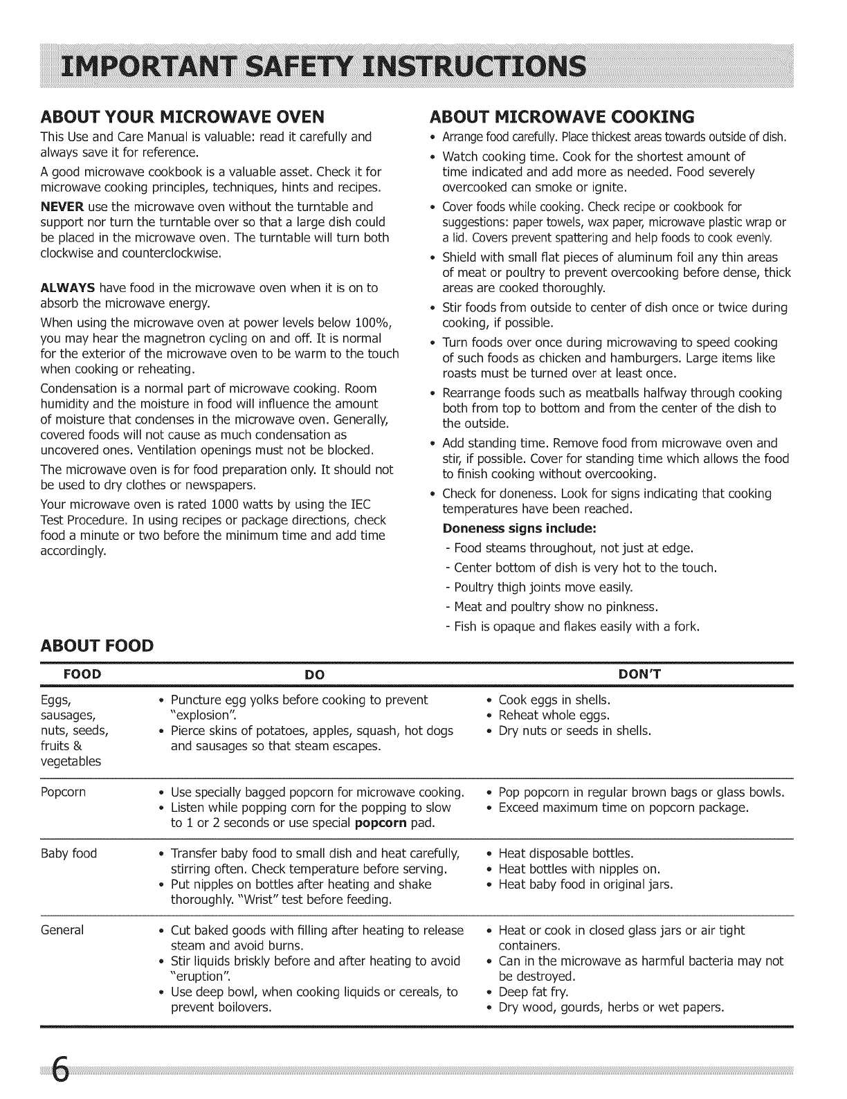 Frigidaire FGMV154CLFA 1012379L User Manual MICROWAVE OVEN Manuals And Guides