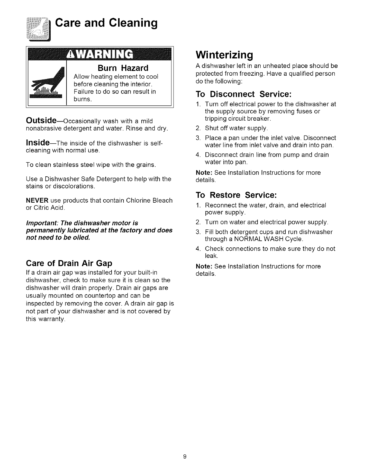 9. Expenses for making the appliance accessible for servicing, such as removal of trim, cupboards, shelves,