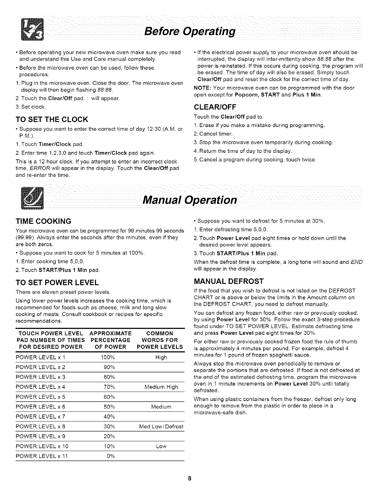 2. If the microwave oven is set for more than 30 minutes at 80, 90 or 100 percent power level, after the first 30 minutes the power level