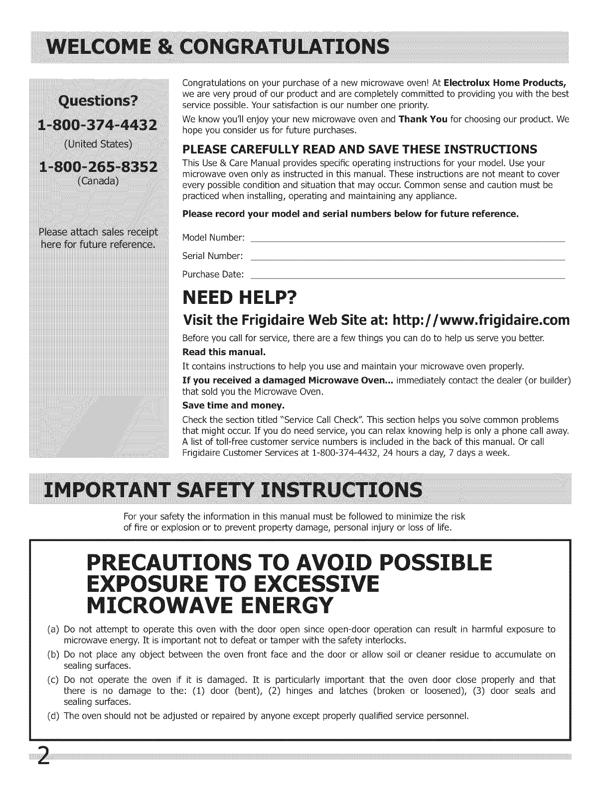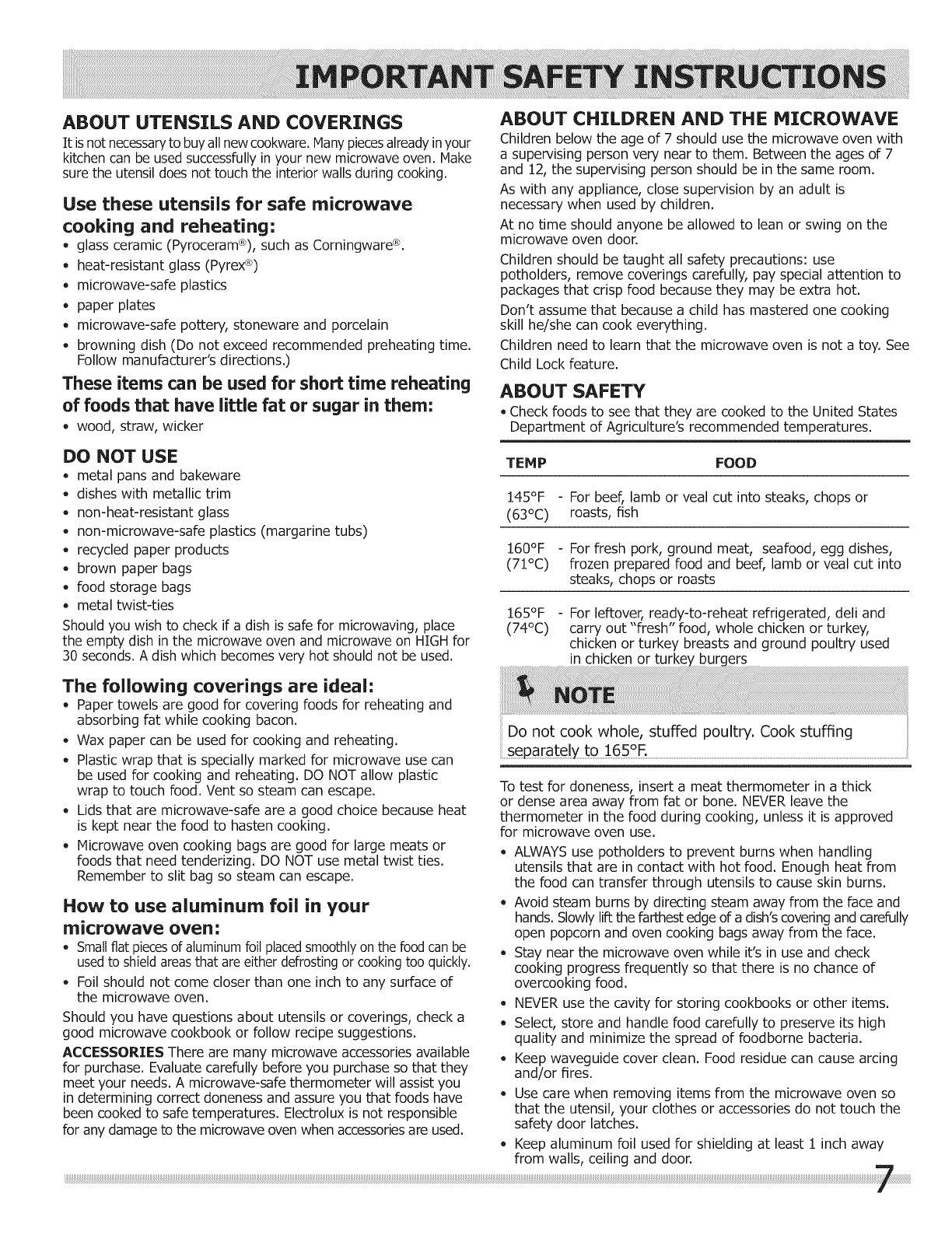 Frigidaire FPBM3077RFB 1601243L User Manual MICROWAVE OVEN Manuals And Guides