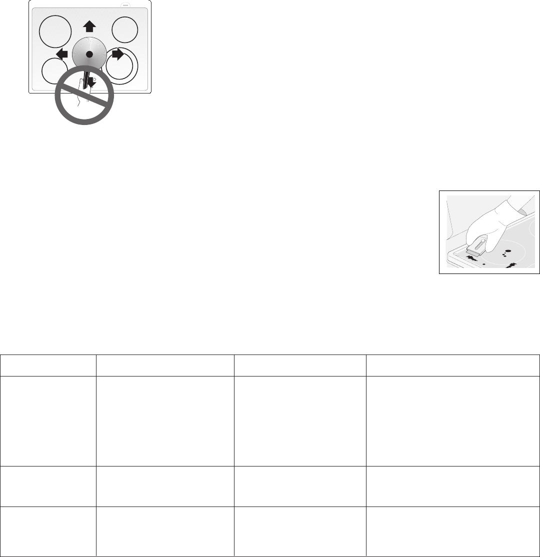 Sliding or scraping of metal utensils on cooktop surface. Do not slide metal utensils on