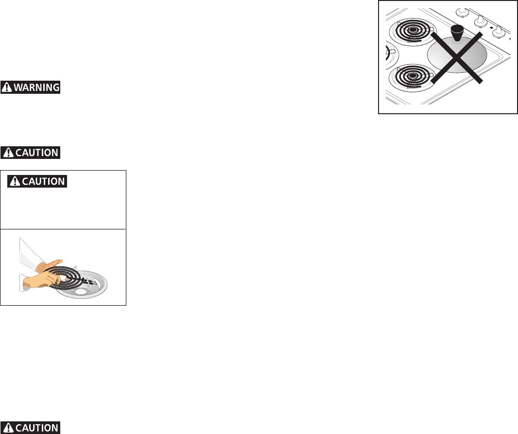 surface. This can cause high enough temperatures to discolor the drip bowls. DO NOT