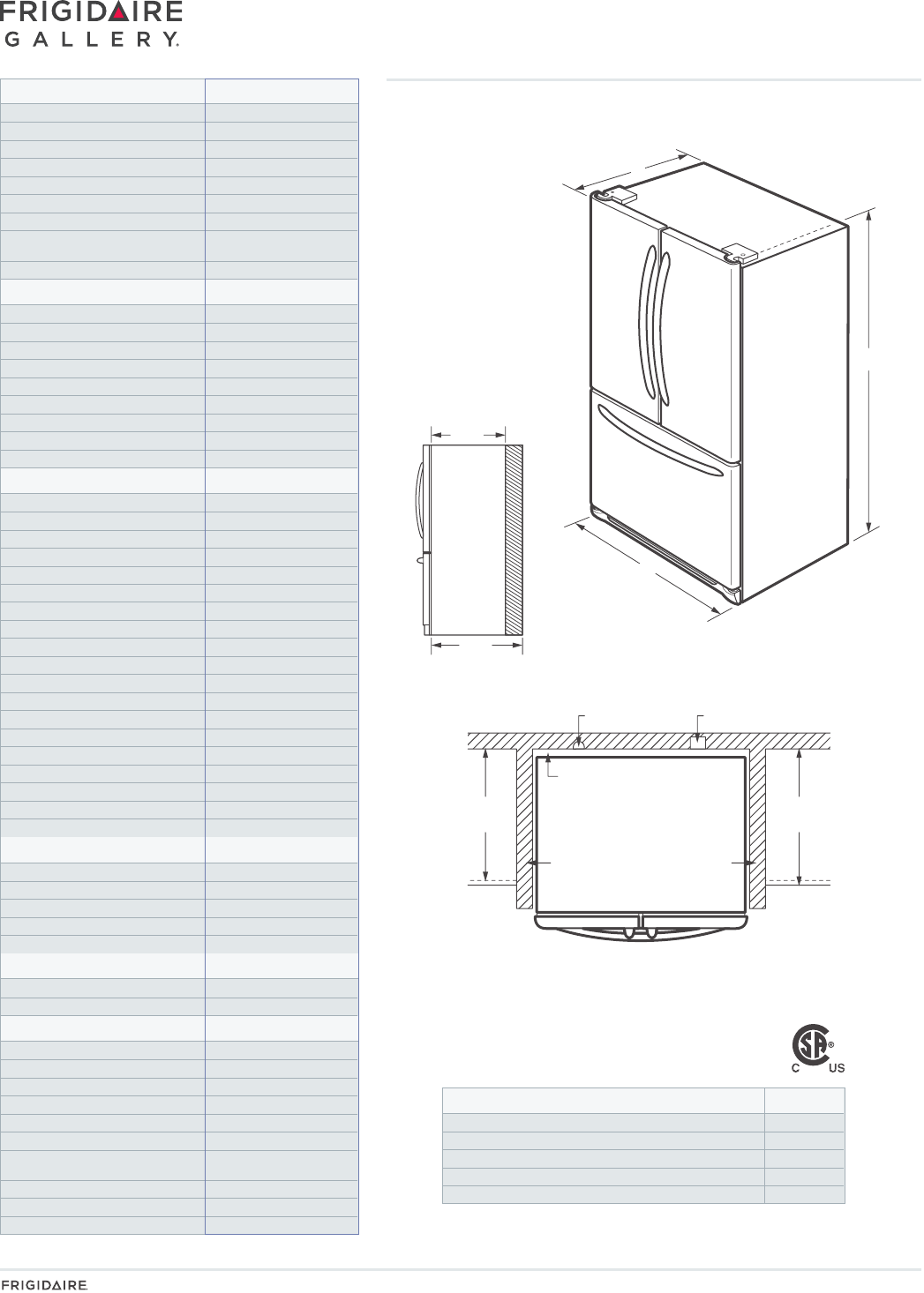 French Door Refrigerator Specifications
