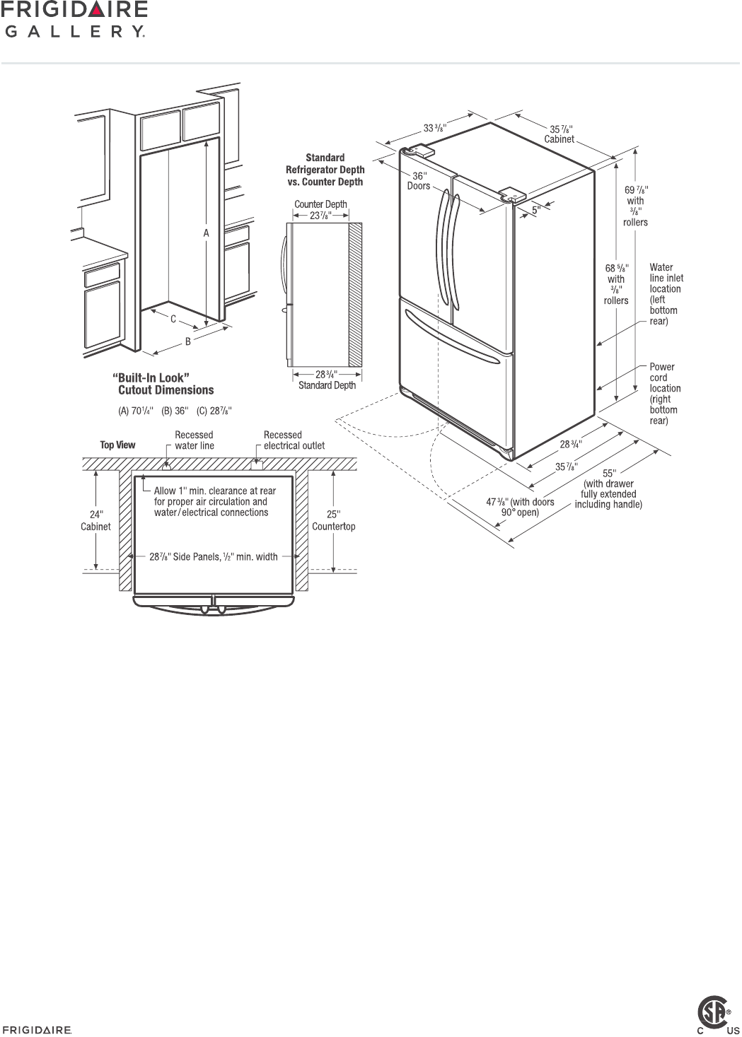 • Minimum opening of 70-1/4" H x 36" W x 28-7/8" D required to allow