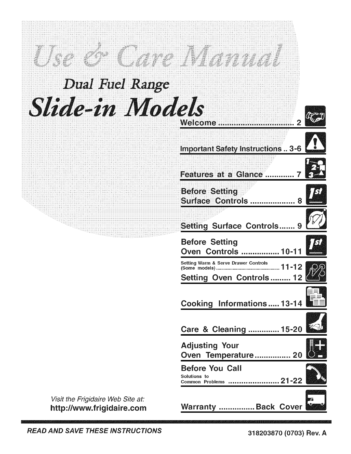 Frigidaire GLCS389FBC User Manual DUAL FUEL RANGE Manuals And Guides L0711278
