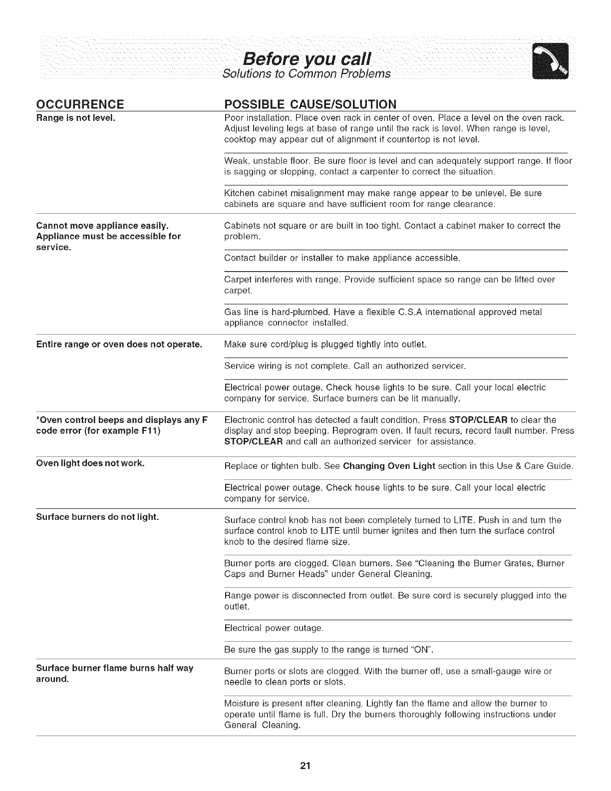 8. Service calls to correct the installation of your appliance or to instruct you how to use your appliance.