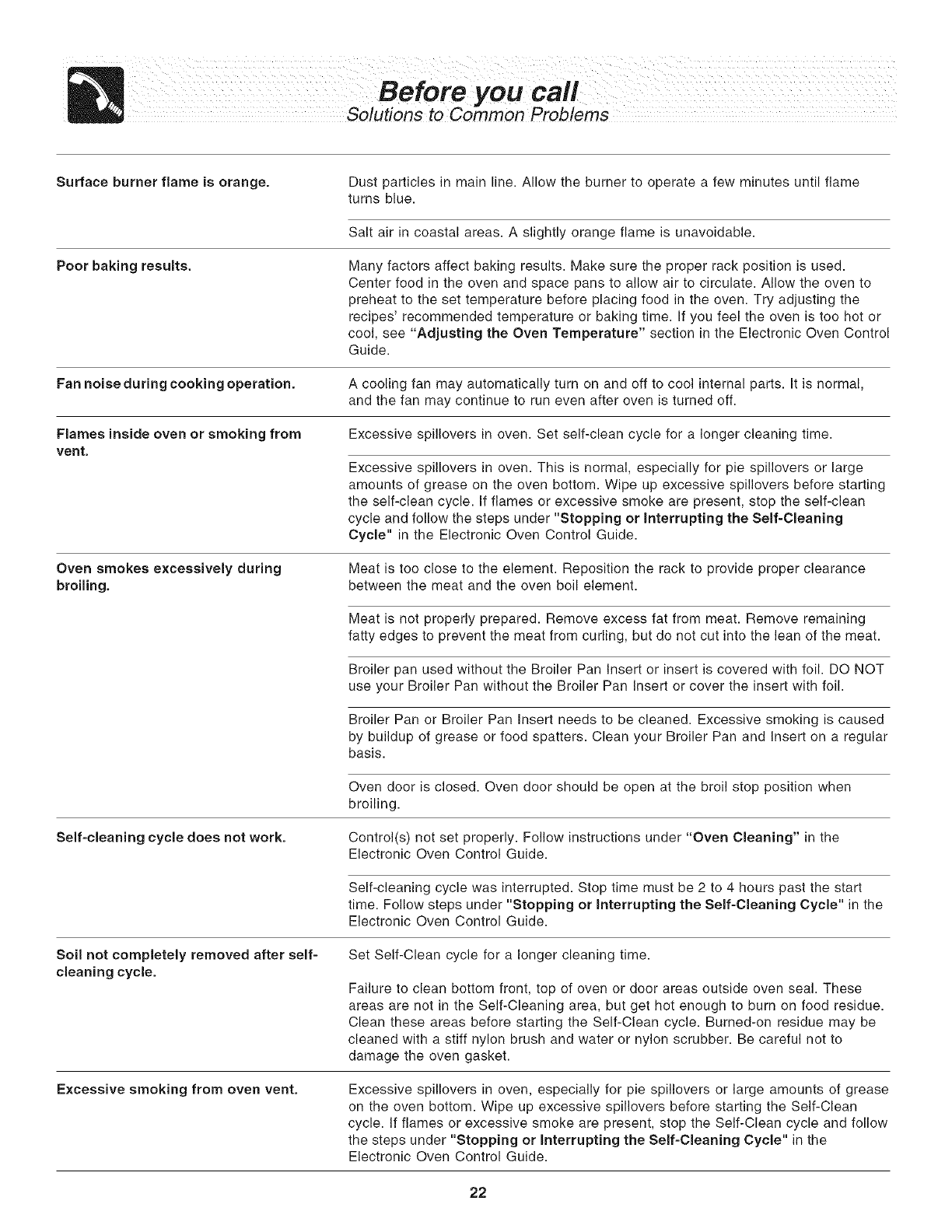 Flames inside oven or smoking from Excessive spillovers in oven. Set self-clean cycle for a longer cleaning time.