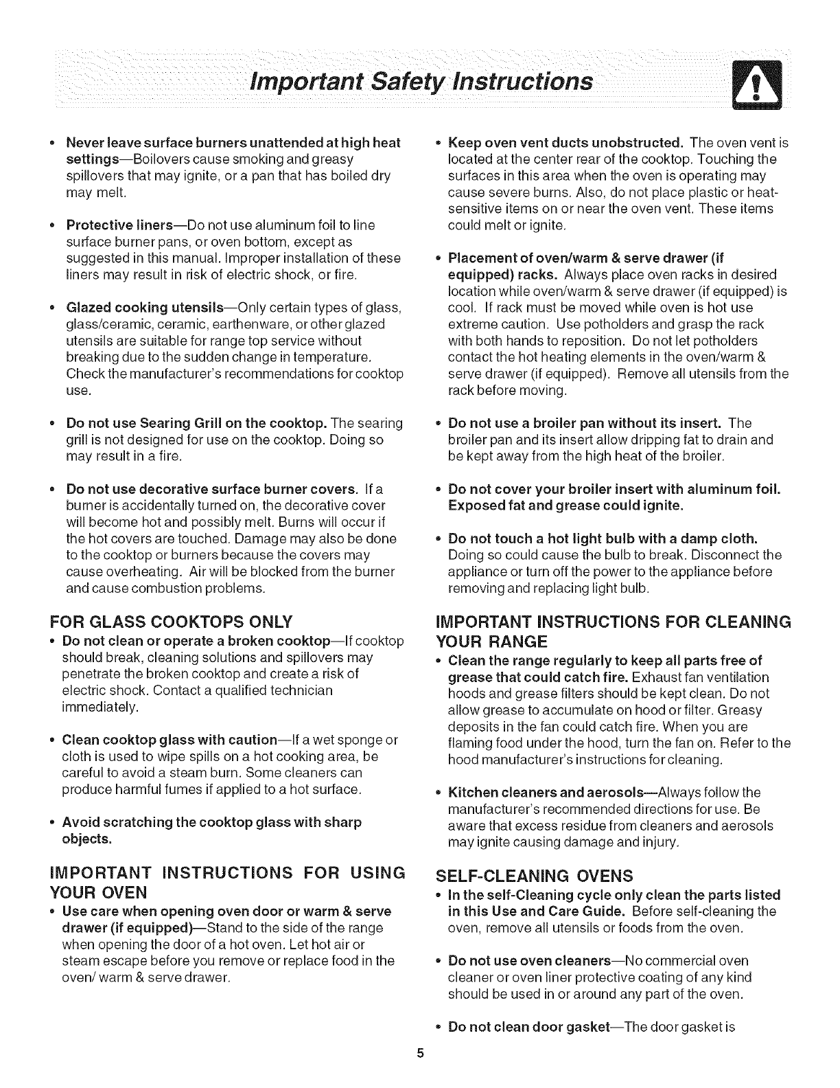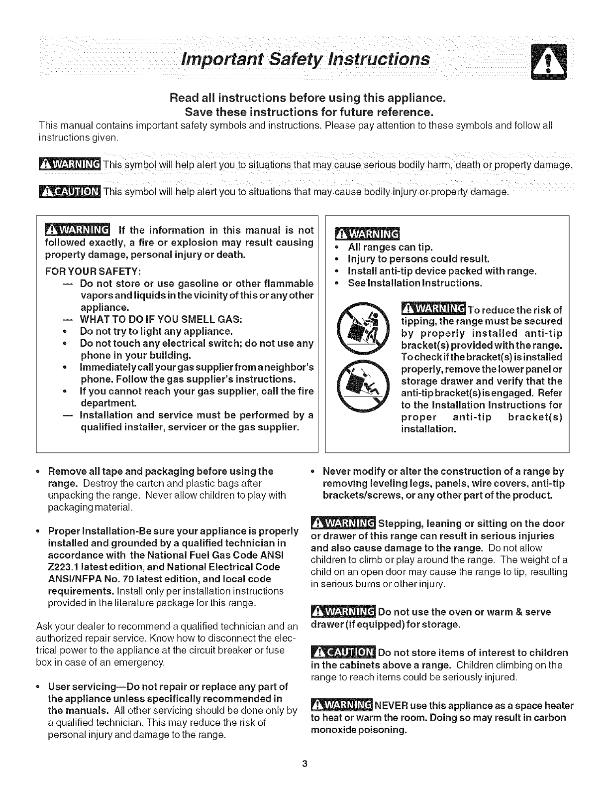 This SYmbol will help alert you to situations that maY cause seiious bodily harm I deat h or property damage.