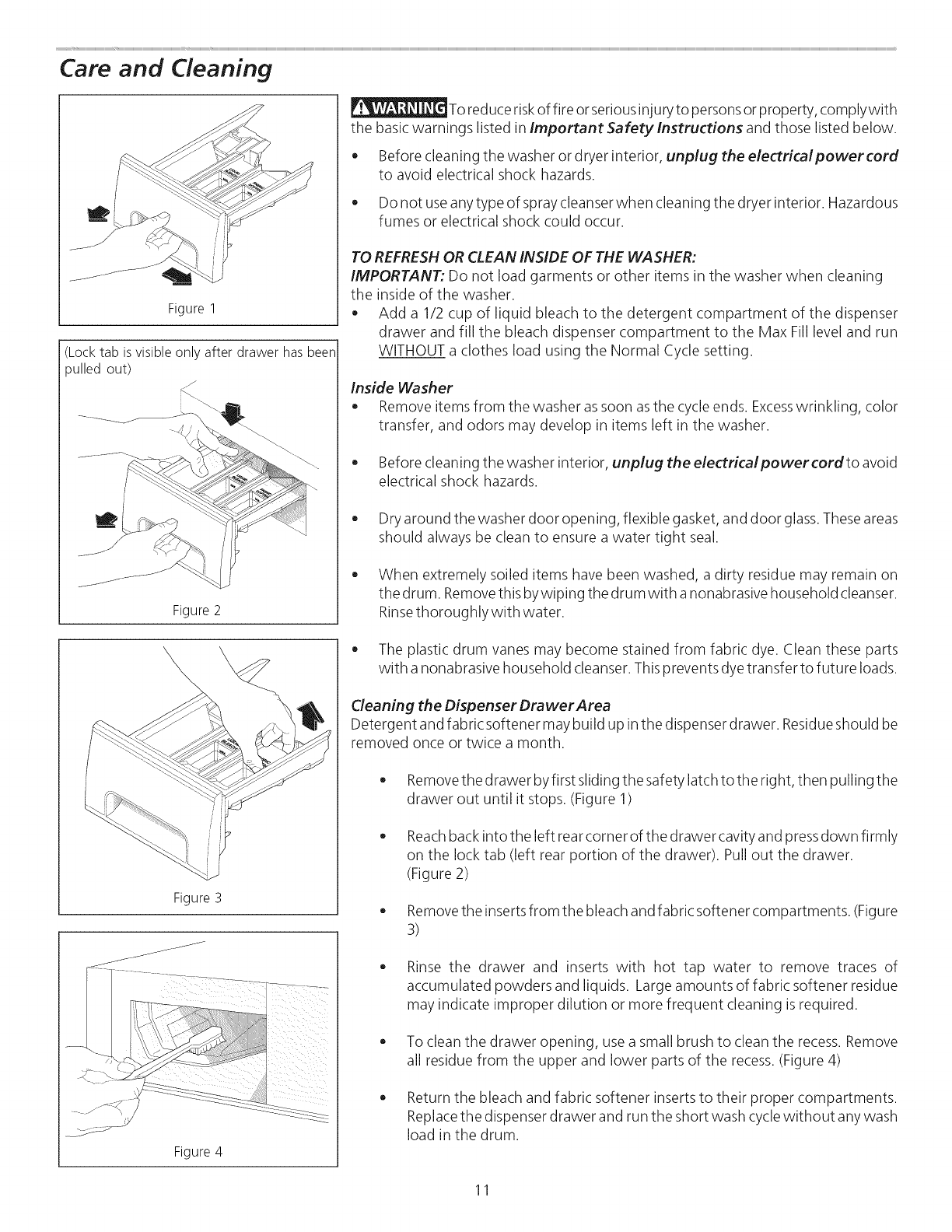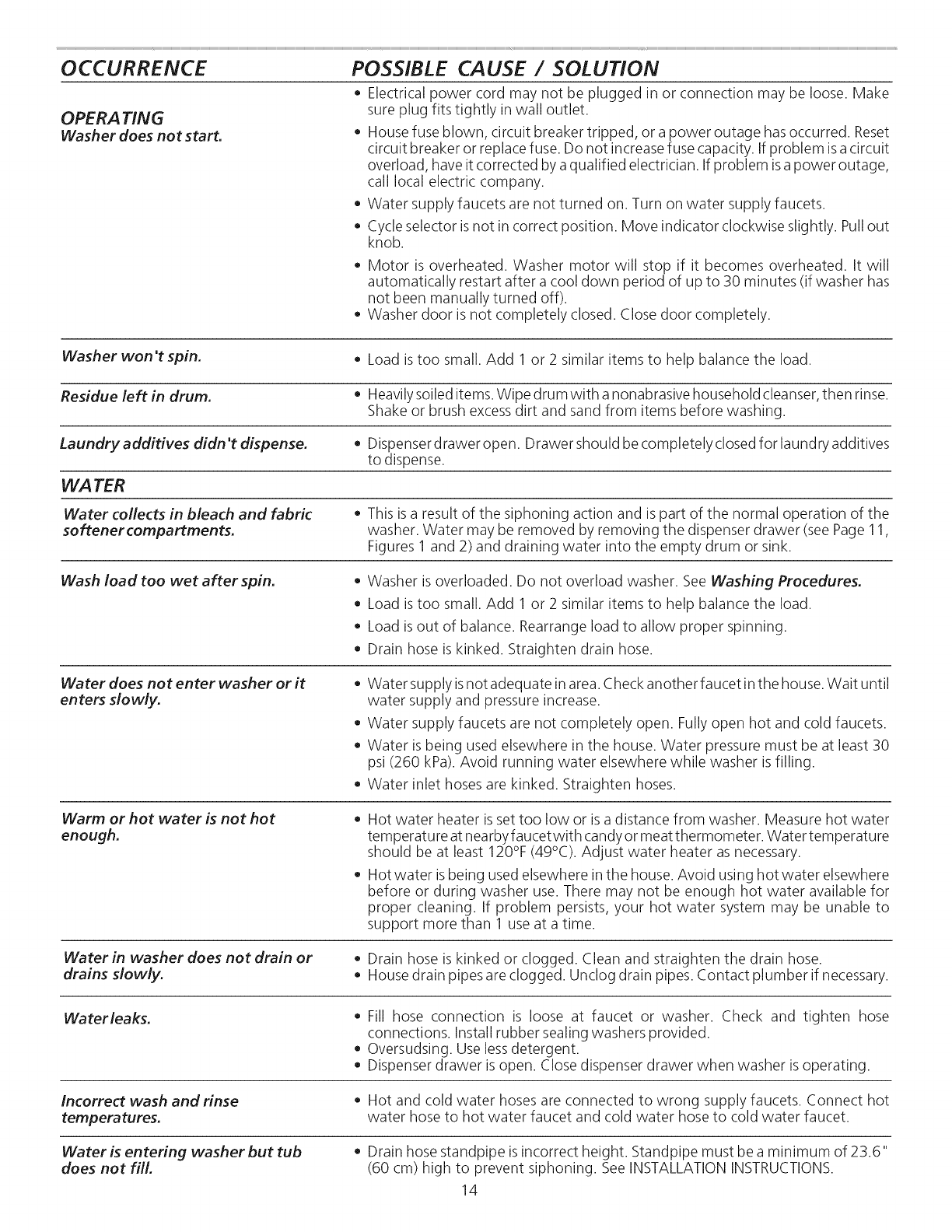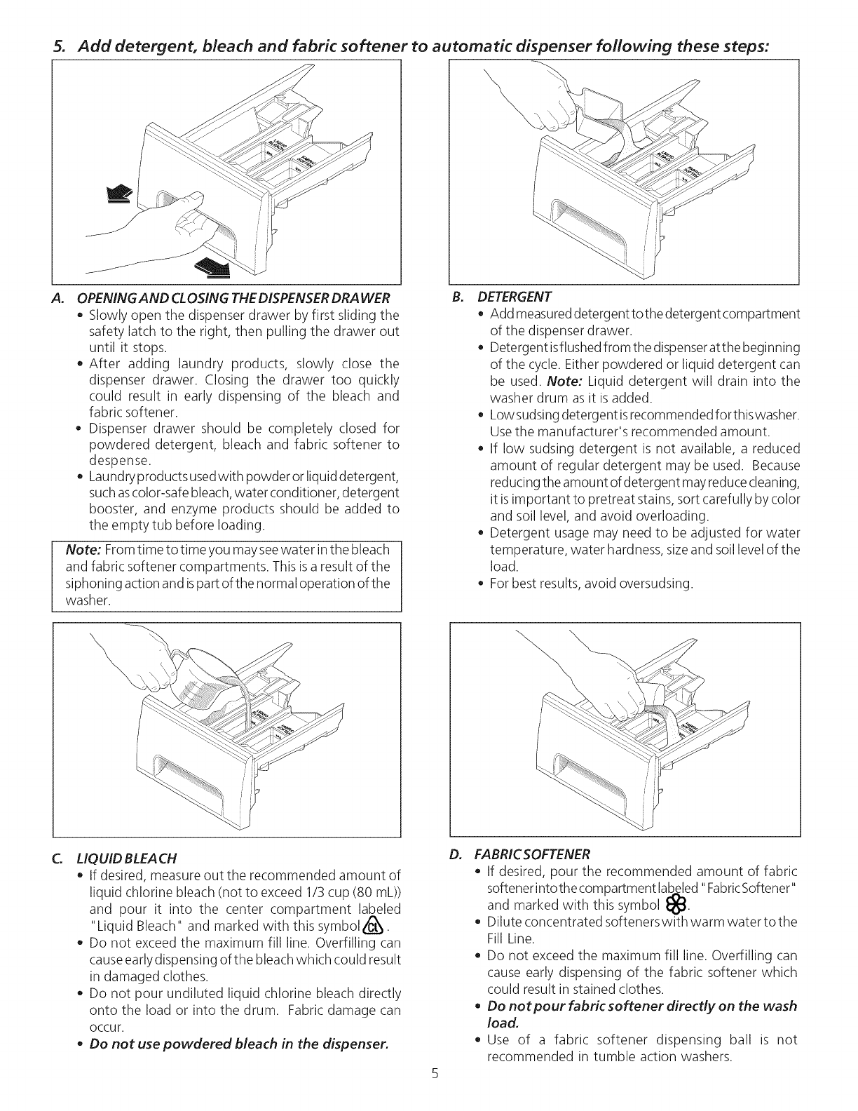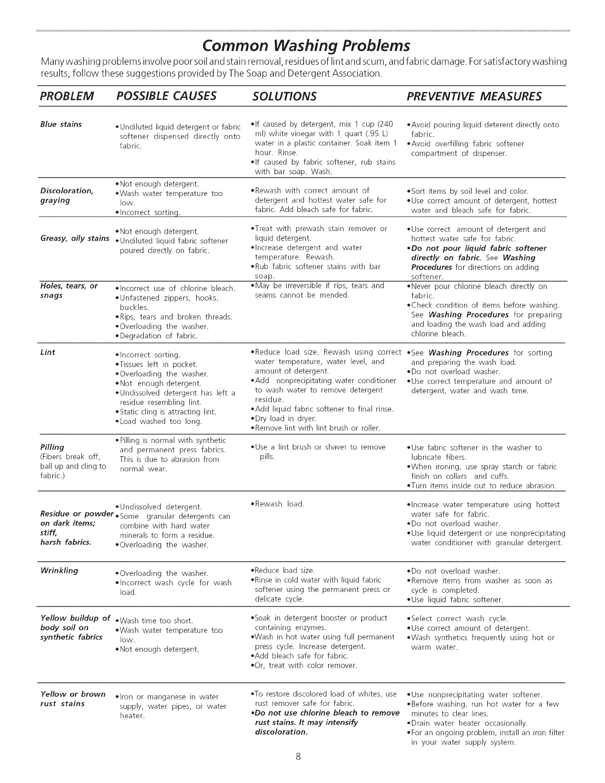 • Do not wash or dry items that have been previously cleaned in, soaked in, or spotted with gasoline, cleaning solvents, kerosene,