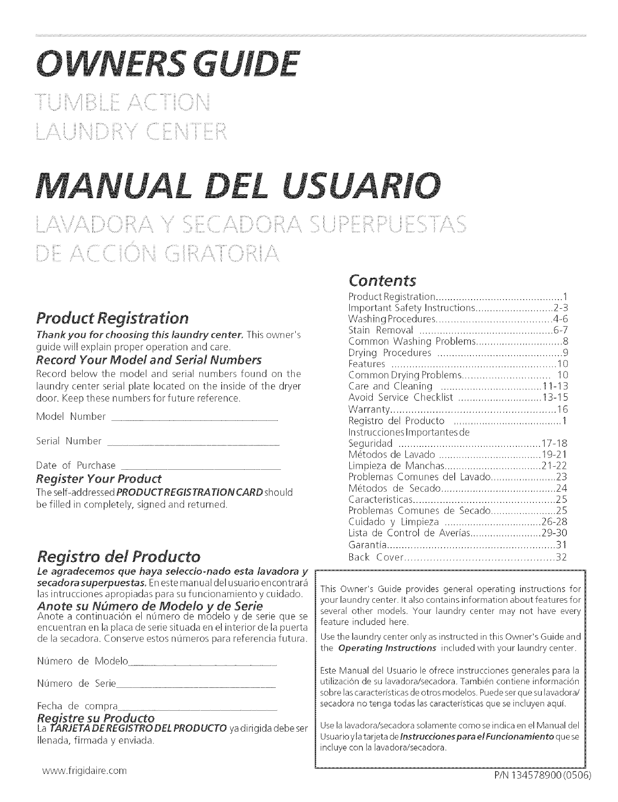 Thank you for choosing this laundry center. This own er's