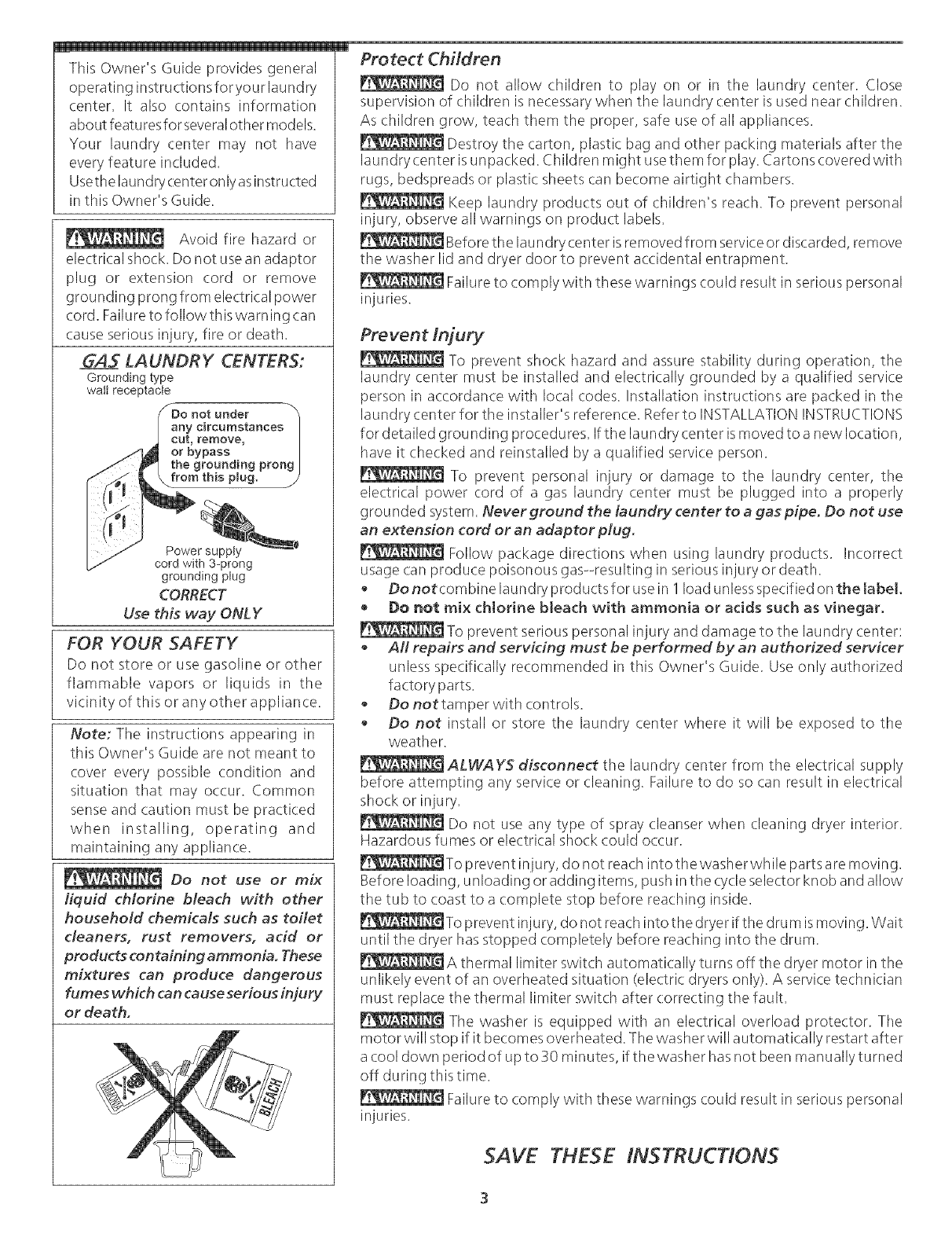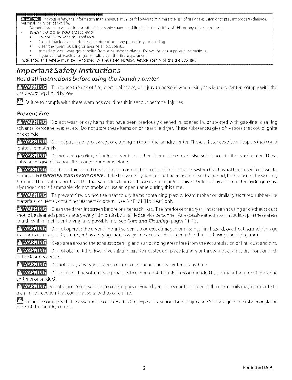 Use the laundry center only as instructed in this Owner's Guide and