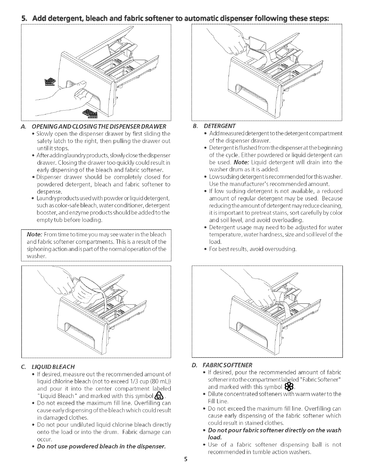 your laundry center_ It also contains information about features for