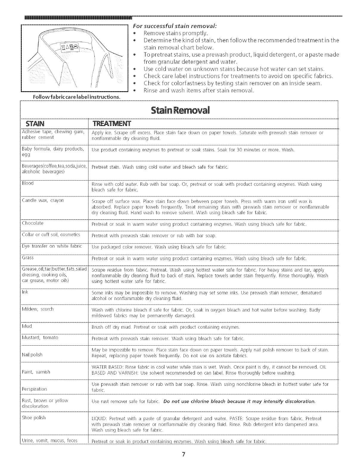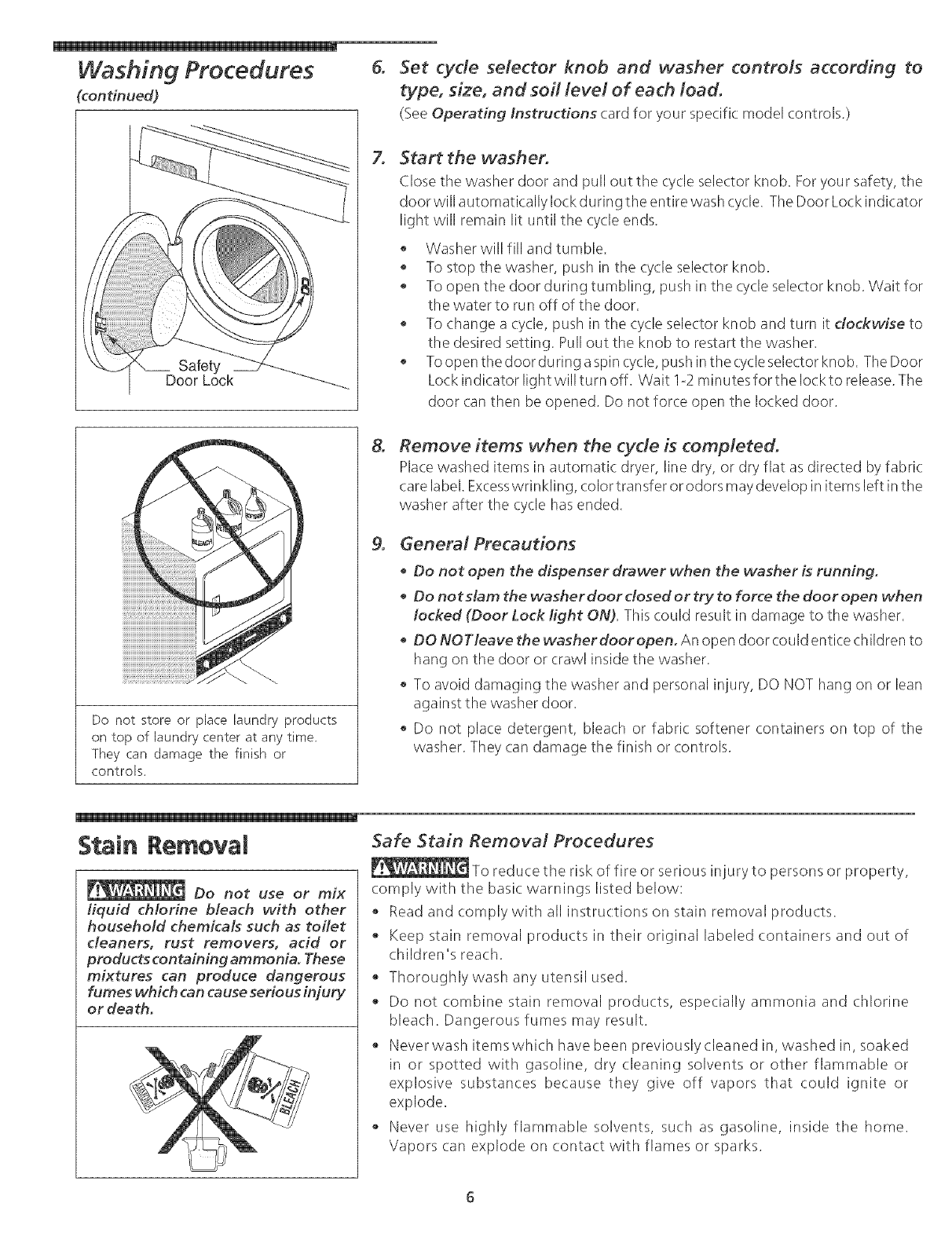 Stain Removal .............................................. 6-7