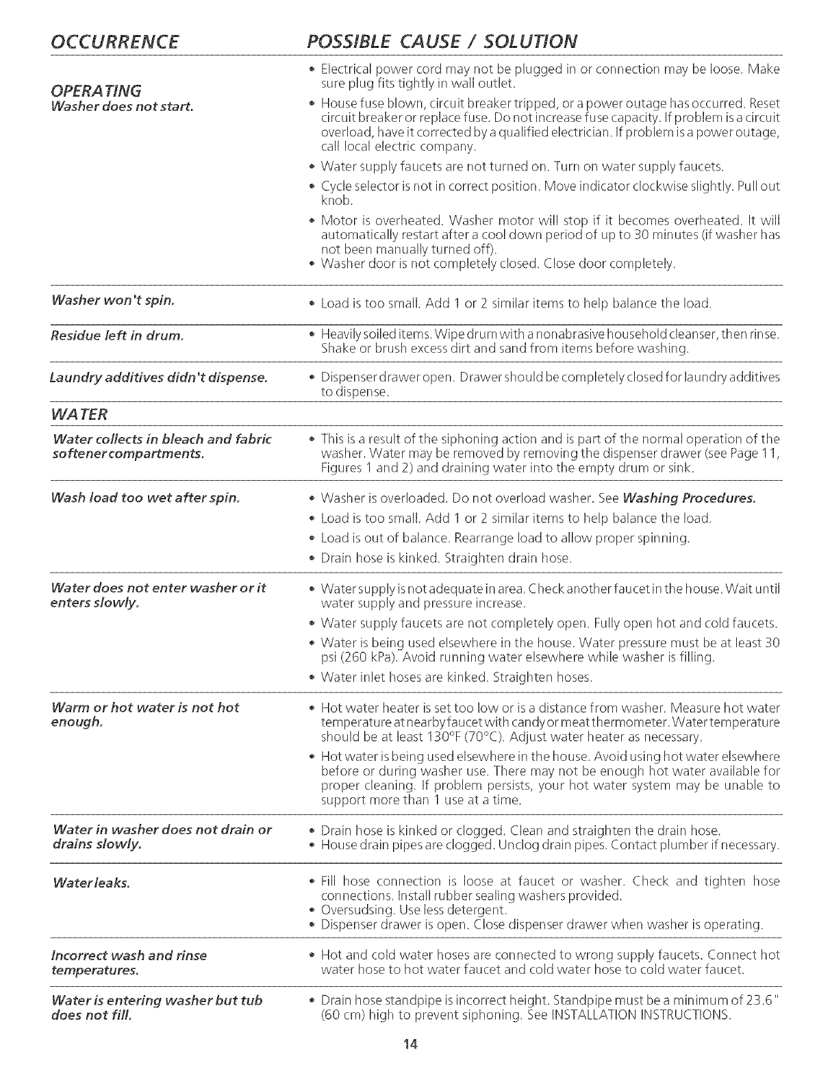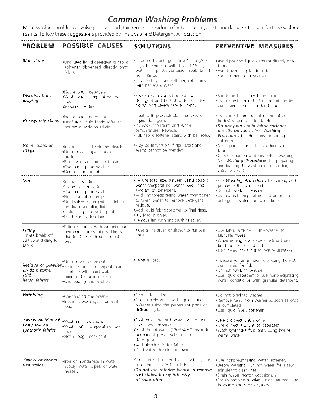 Common Washing Problems .............................. 8