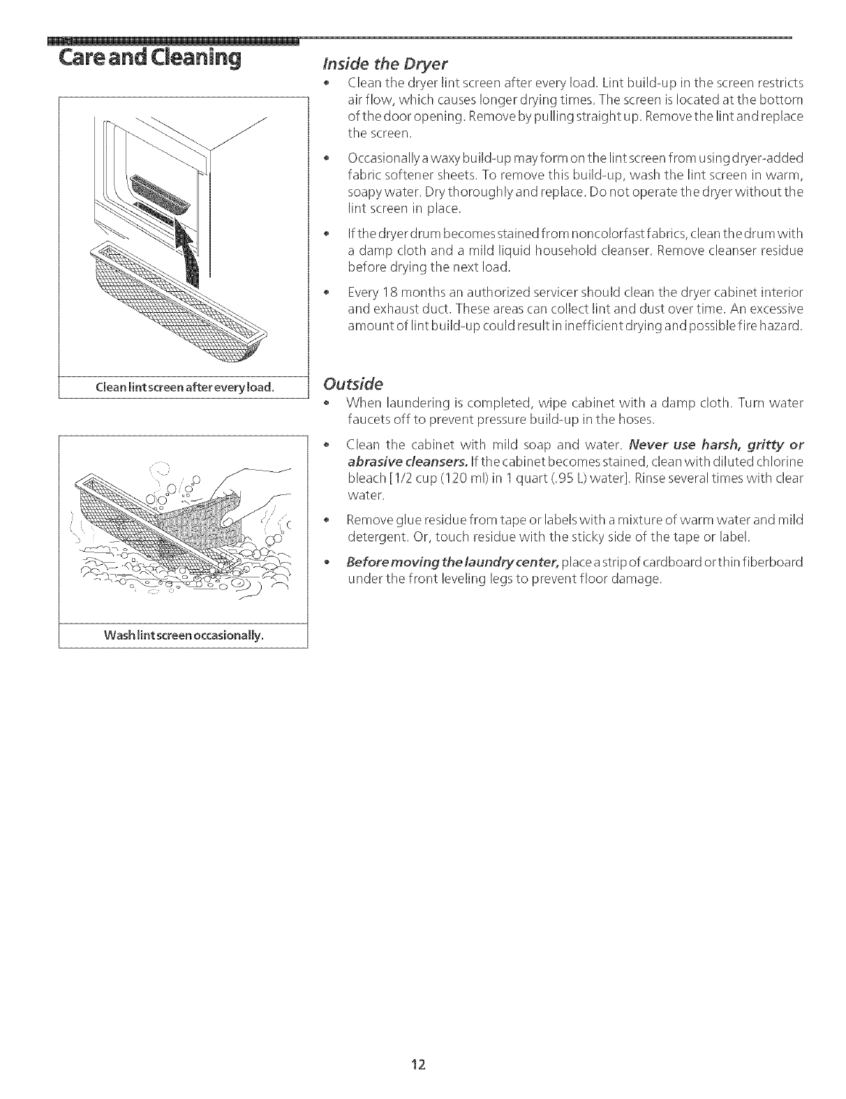 Iong, outsideofthedryer screen before starting each cycle,