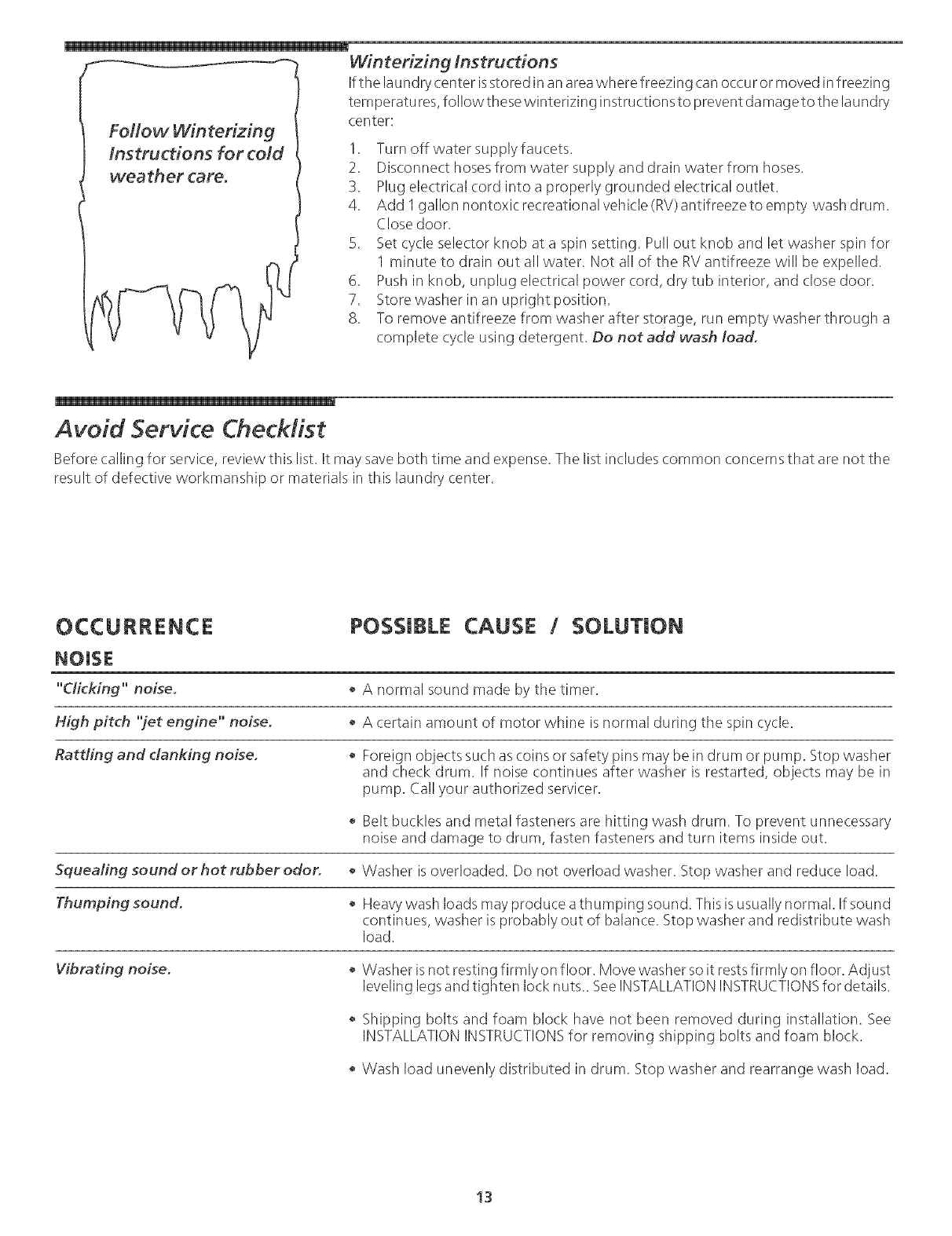 Avoid Service Checklist ............................. 13-15