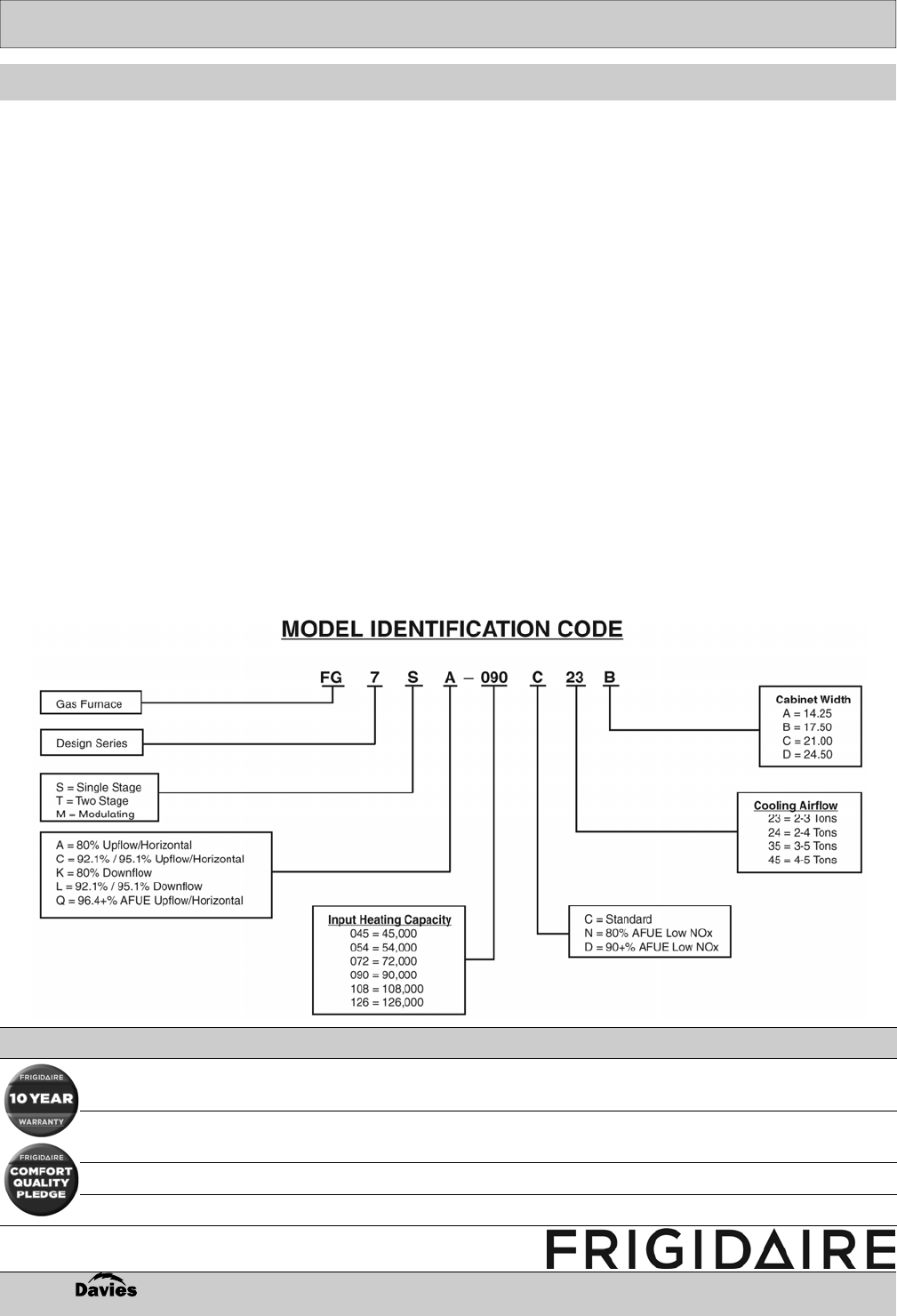 1 Year Comfort Quality Pledge: Replacement of the entire unit if Heat Exchanger fails within the first year