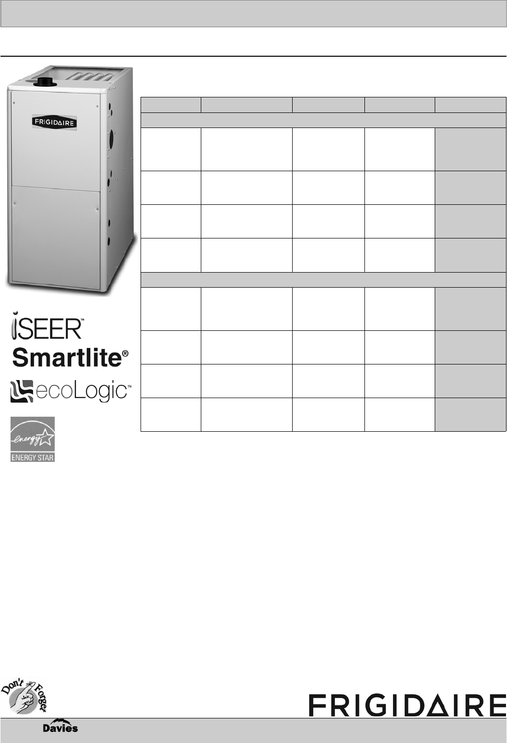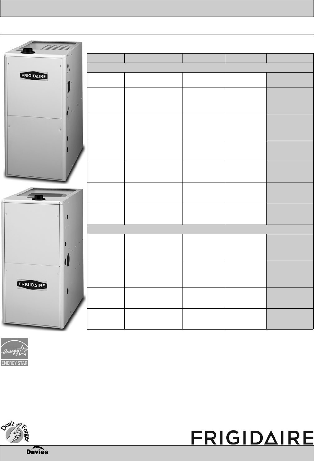 • Warranty: Limited lifetime on 14 gauge heat exchanger; 1 year parts