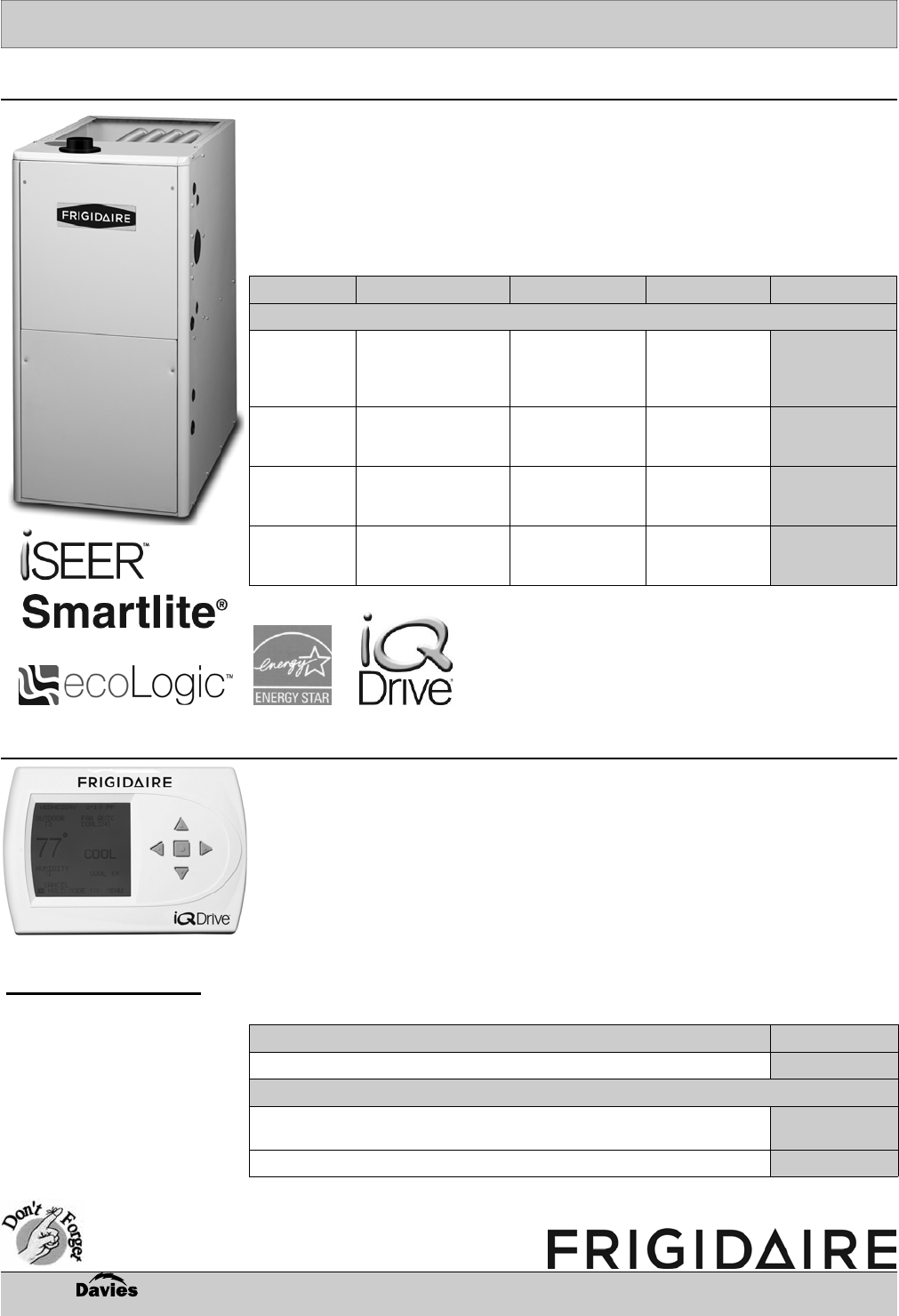 • 90 second fixed cooling cycle blower off delay (TDR): Increases cooling performance when matched with a coil