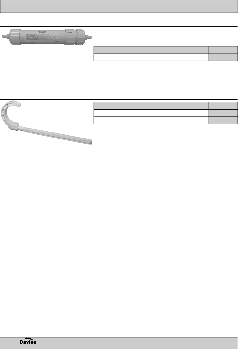 Description Specifications Part Number