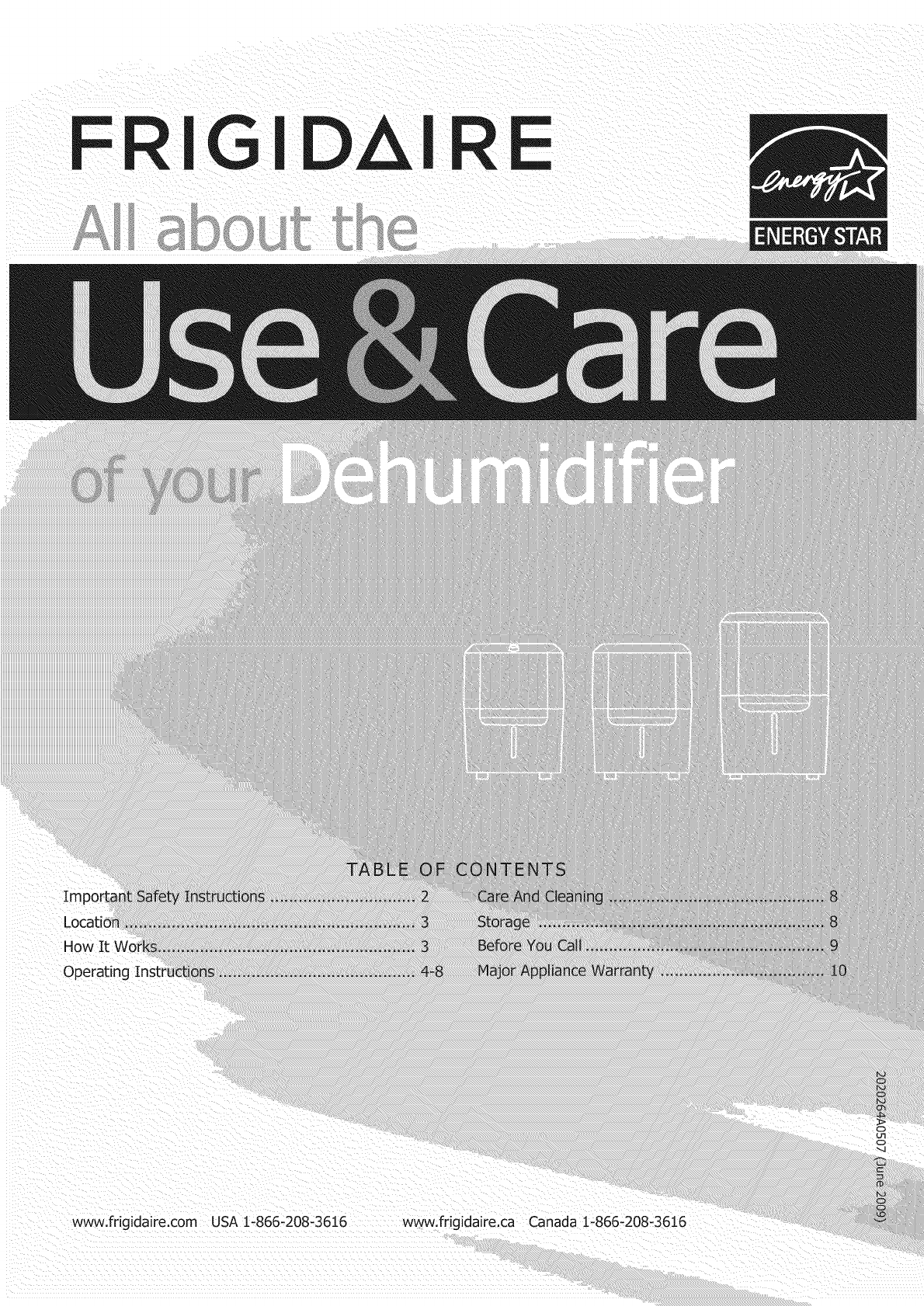 This USE & CARE MANUAL provides specific operating instructions for your model. Use the dehumidifier only as instructed in this USE & CARE