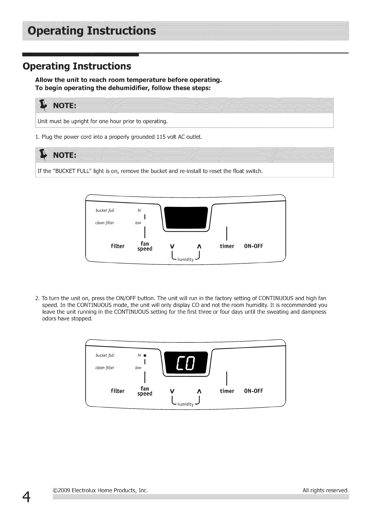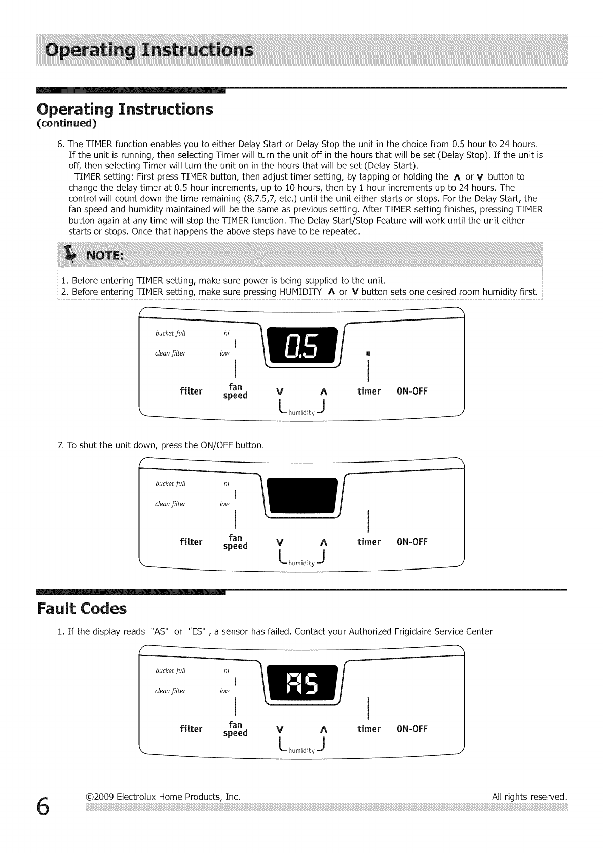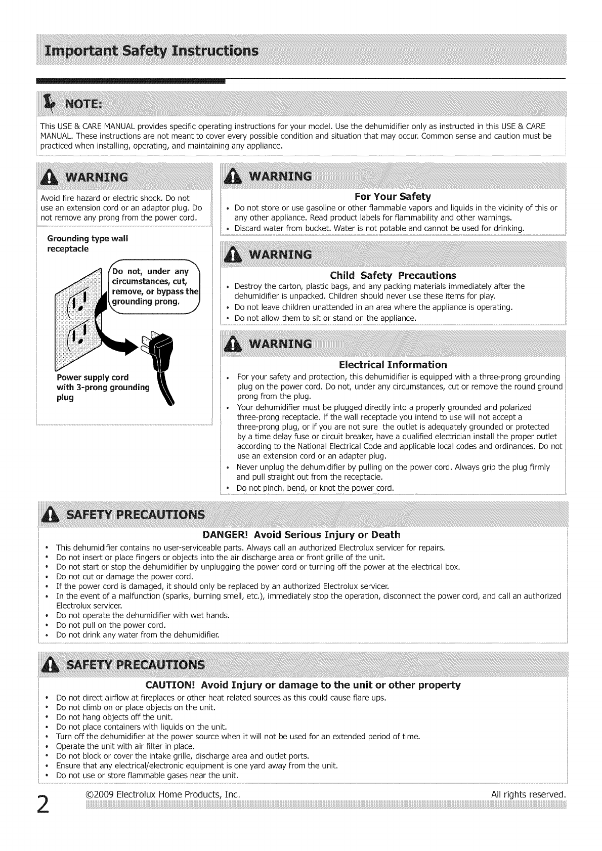 02009 Electrolux Home Products, Inc. All rights reserved.