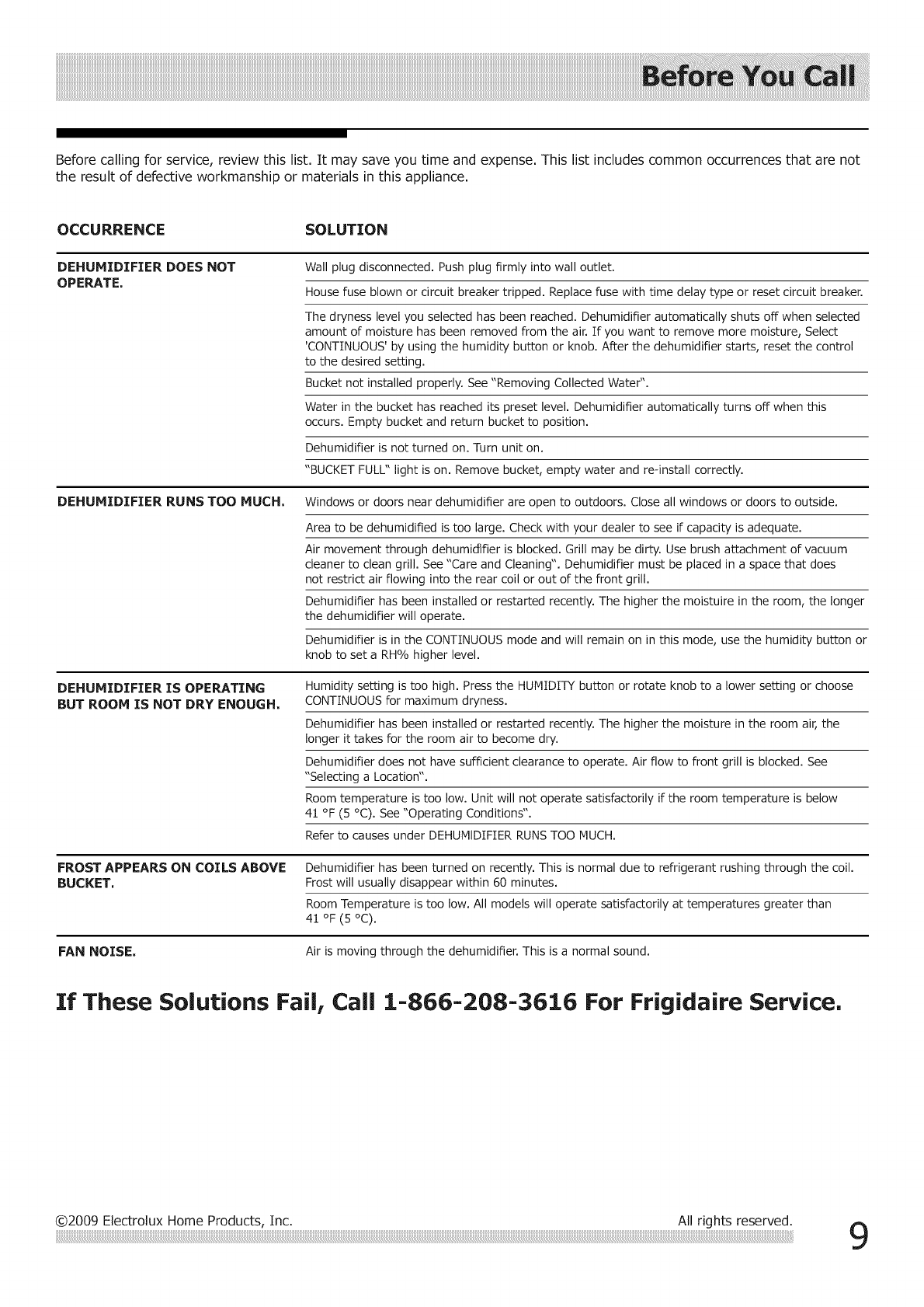 IfThese Solutions Fail,Call 1-866-208-3616 For FrigidaireService.