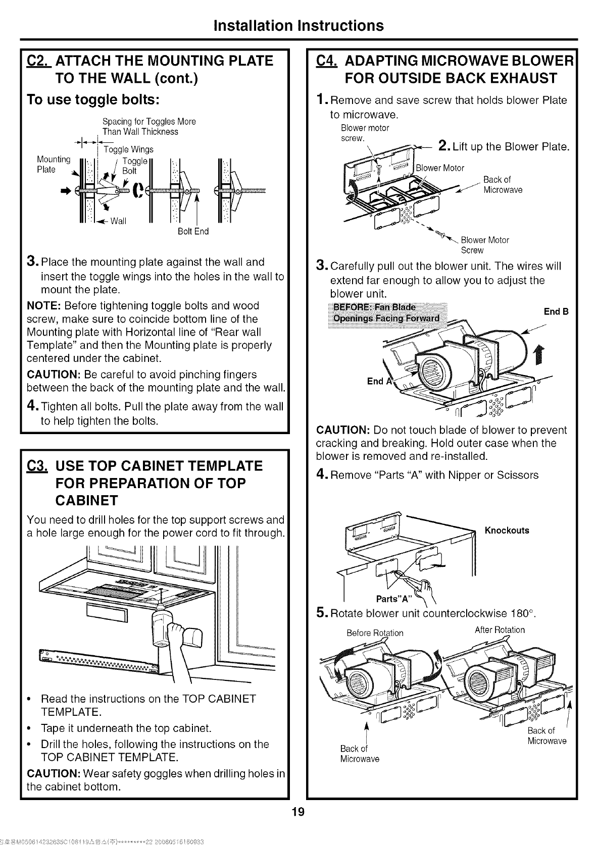 FRIGIDAIRE Microwave/Hood Combo Manual L0609490 FRIGIDAIRE Microwave/Hood Combo Owner's Manual, FRIGIDAIRE Microwave/Hood Combo installation guides
