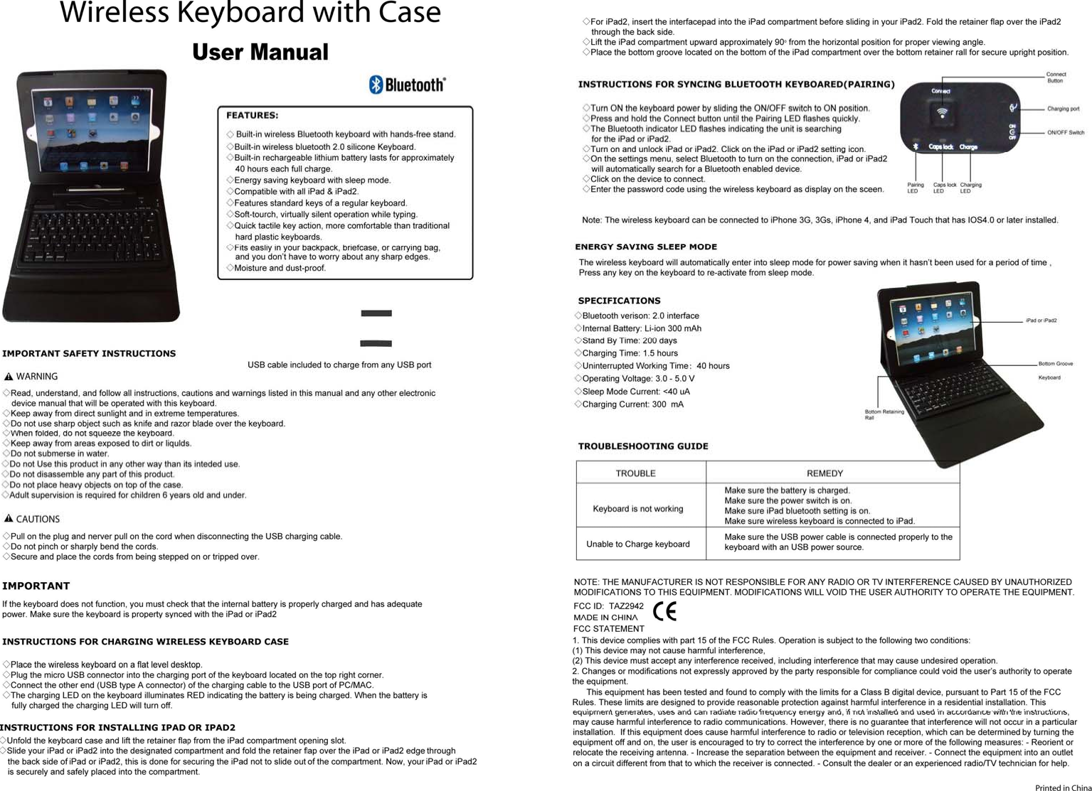 Front Electronics 2942 Bluetooth keyboard User Manual
