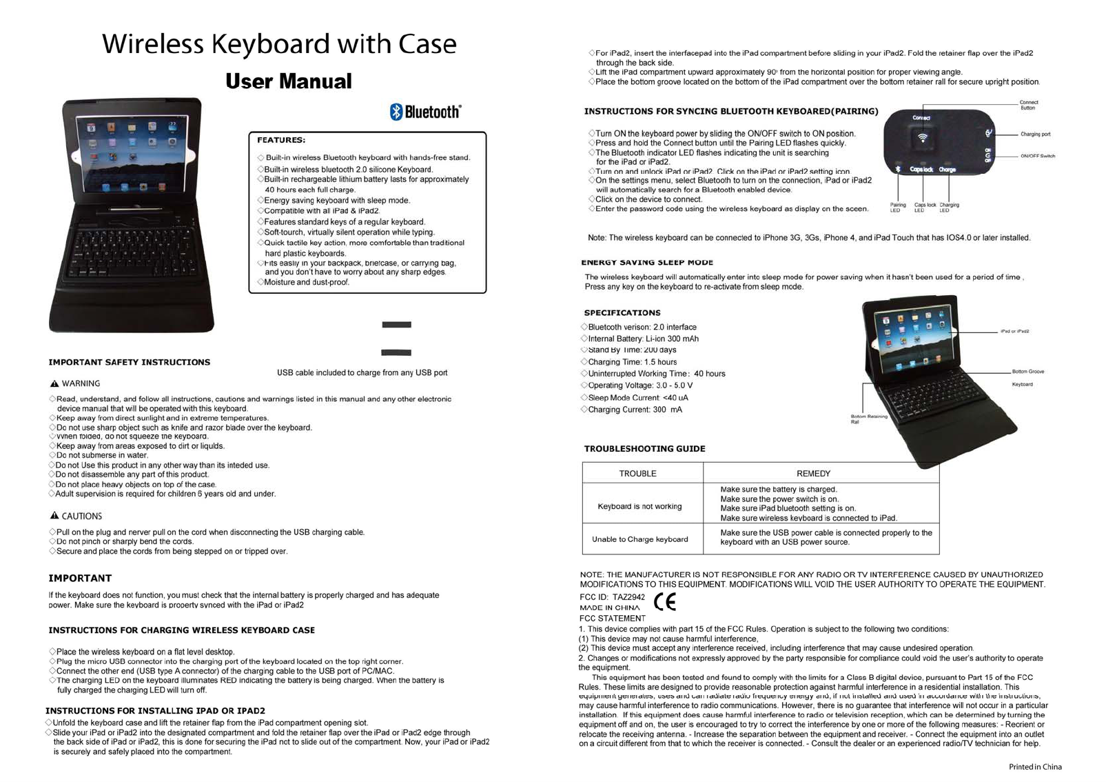 Front Electronics 2942 Bluetooth keyboard User Manual