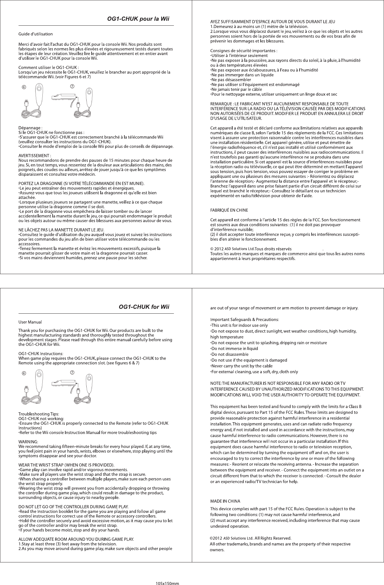 Front Electronics WL015 REMOTE FOR Wii User Manual WL015 IB