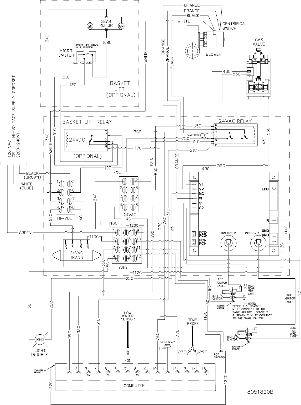 Two self-contained burners are located beneath the cookpot. Each burner is fitted with special