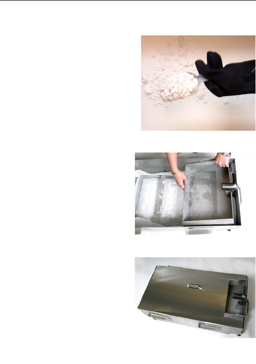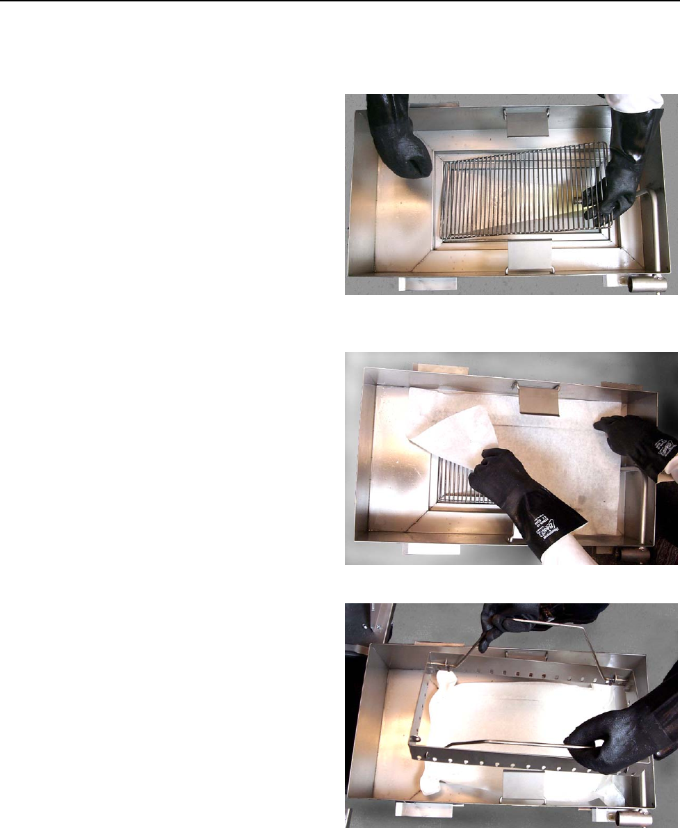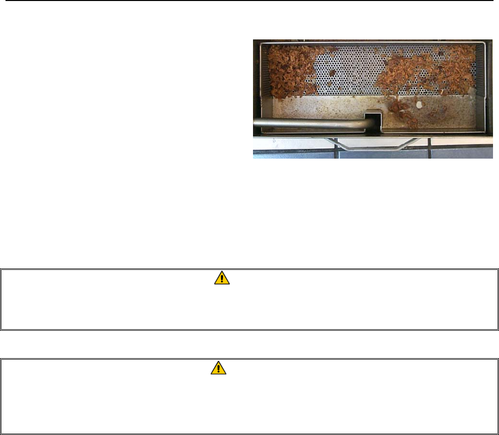 The crumb tray (if equipped) in portable filter systems must be emptied into a fireproof
