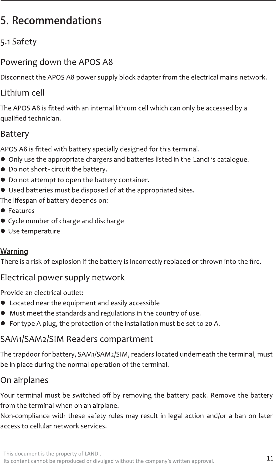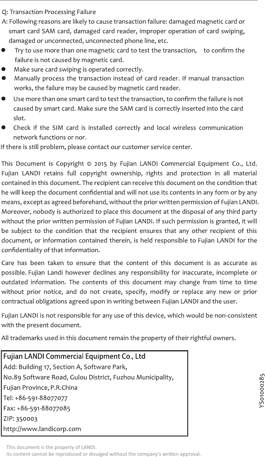 Fujian LANDI Commercial Equipment APOSA8LEWF APOS A8 User Manual