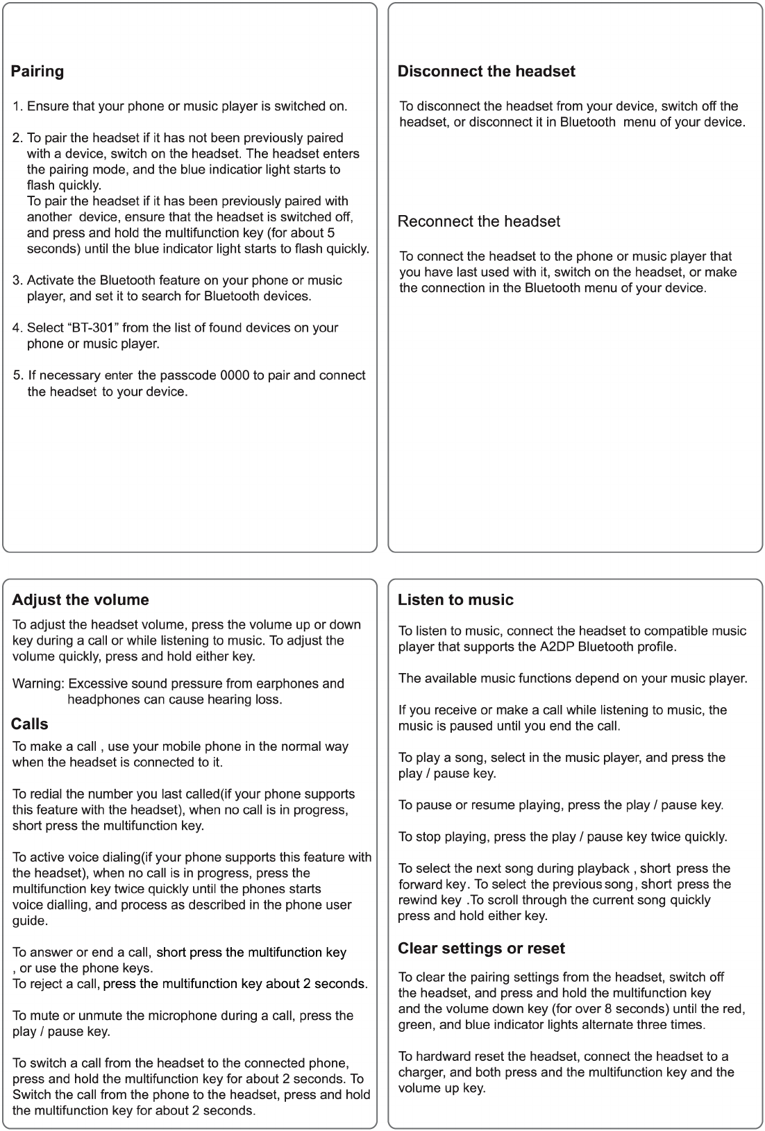 Fujikon BT-0301 Bluetooth Headphones User Manual BT 301 user manual 1 rev2 psd