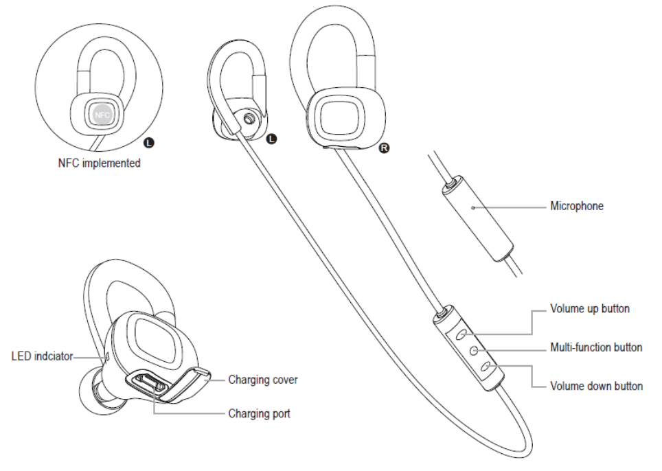the NFC function on the Bluetooth device. Place the left earbud near the device; the device