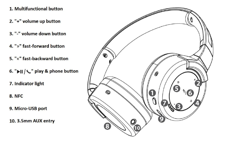When you want to turn on the headset, locate the multifunctional button on the right side of